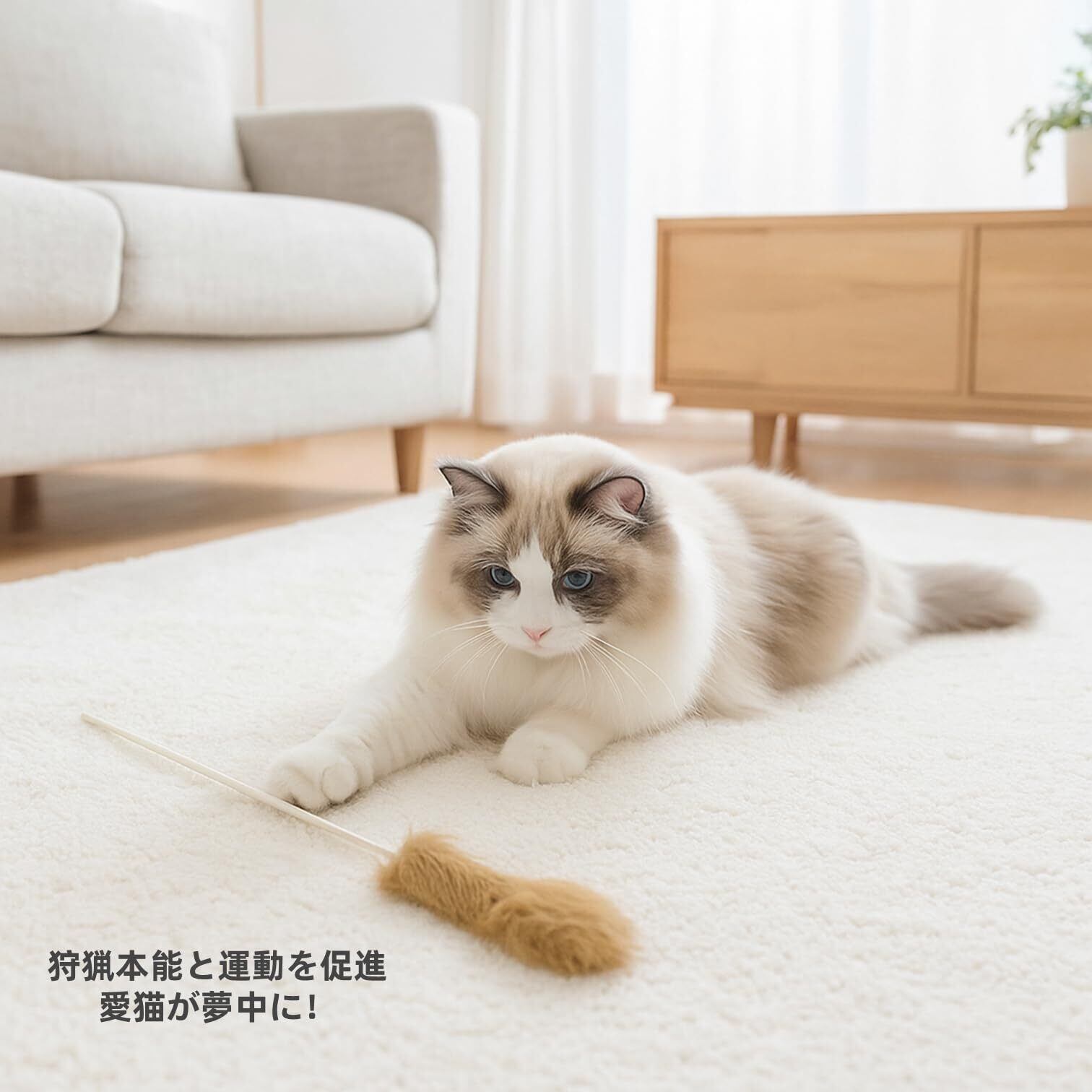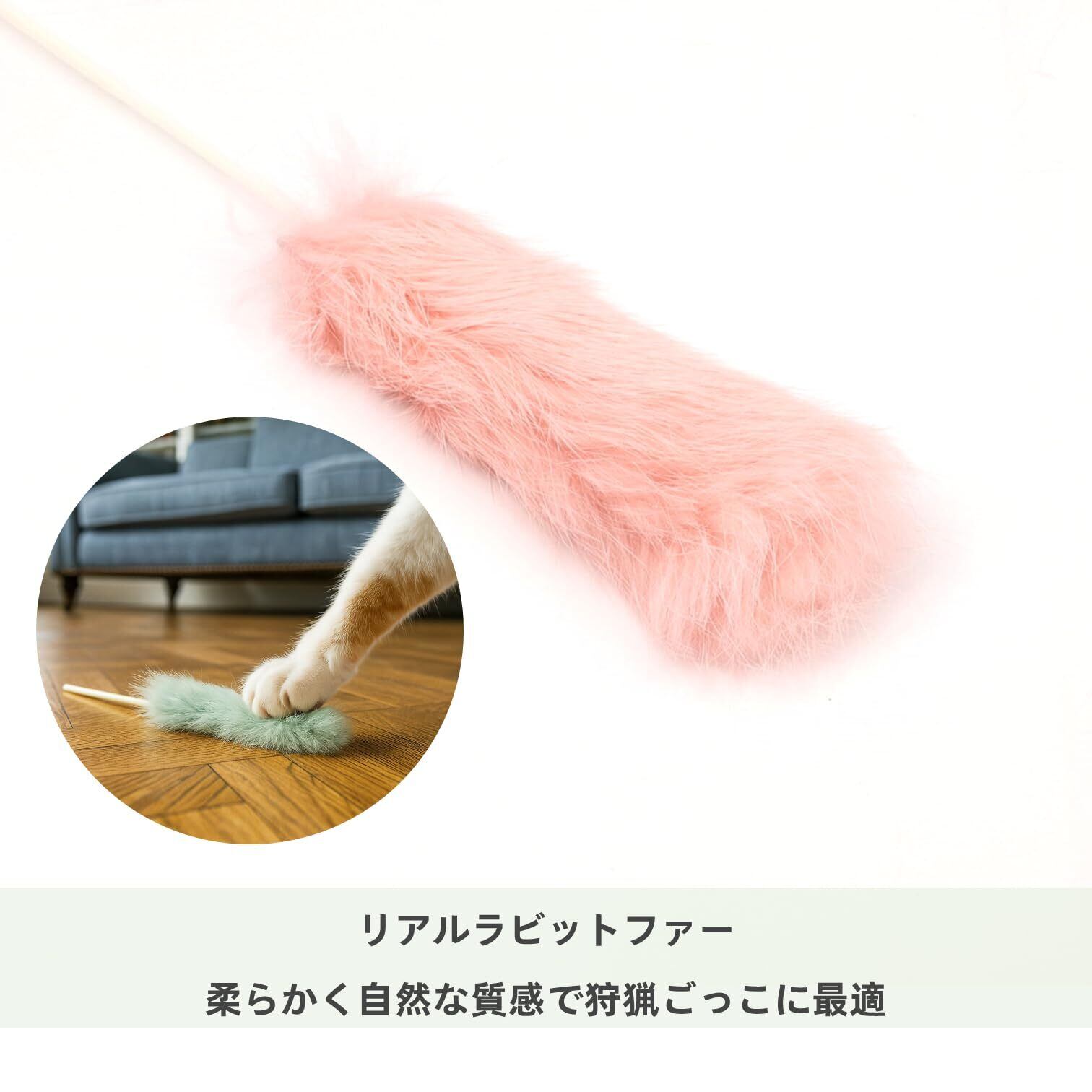 【天然うさぎ毛でリアルな質感】 – 猫の視覚と触覚を刺激し、夢中で遊ぶ猫用おもちゃ。猫じゃらしの素材として最適