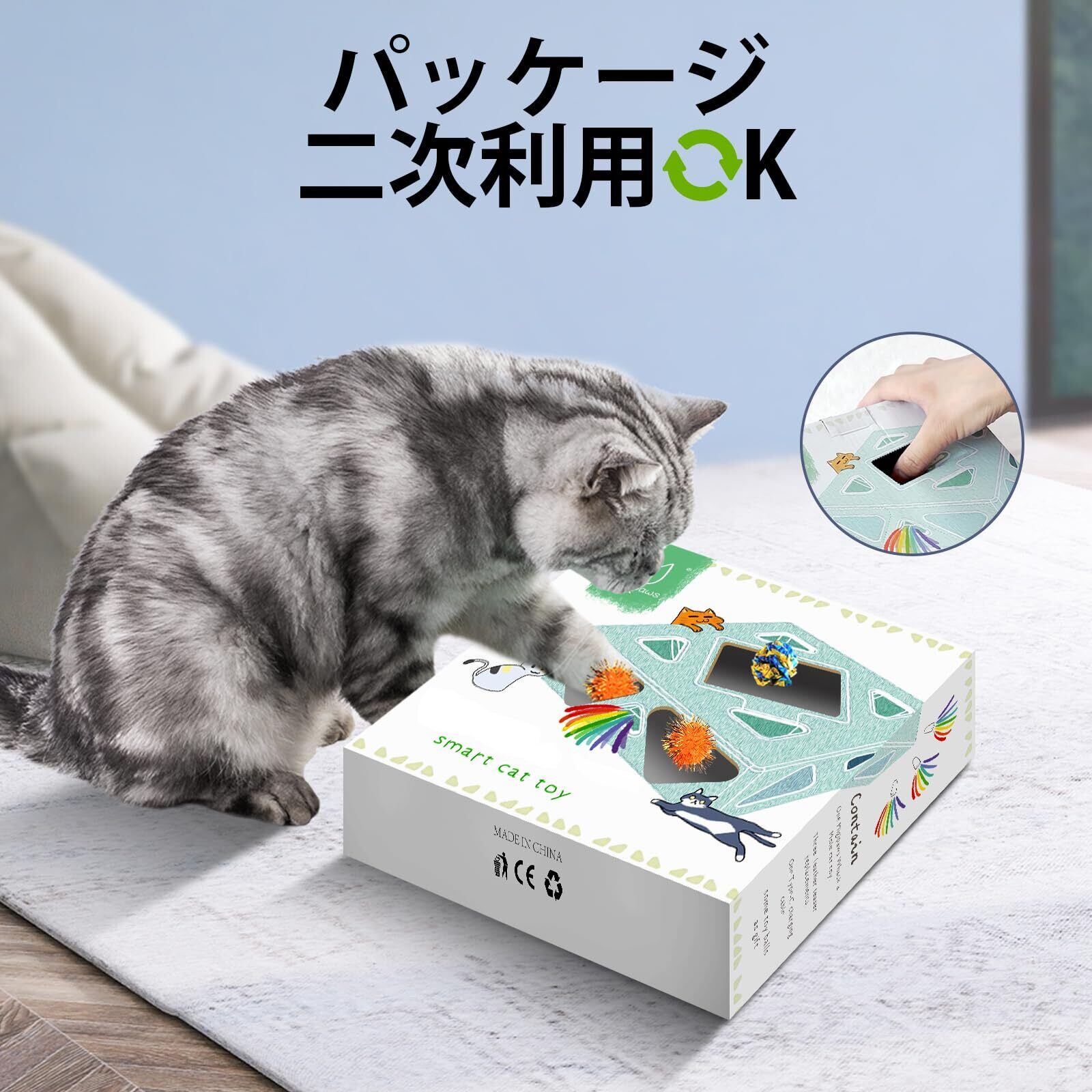 【猫に優しい安全設計】直方体のデザインで鋭い角がなく、猫ちゃんの足に優しい滑らかな表面です。浅く見やすい穴の設計により、猫ちゃんの狩猟本能を自然に引き出します。運動不足の猫ちゃんでも、楽しく体を動かして健康的な毎日を送れることが期待できます。