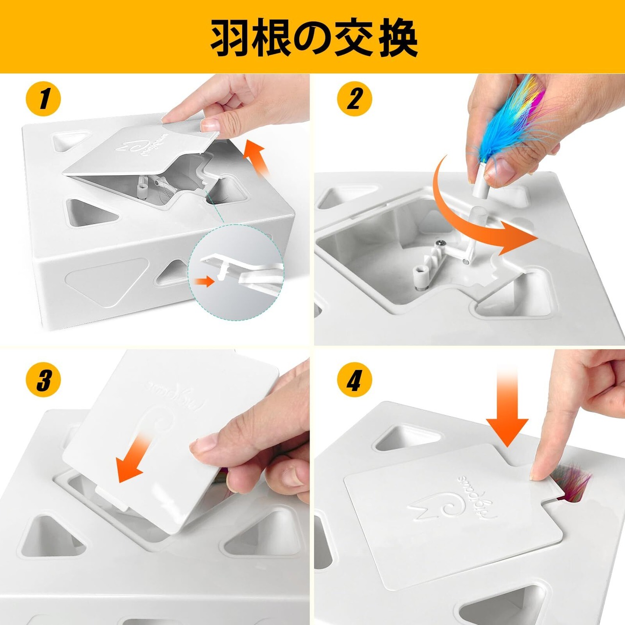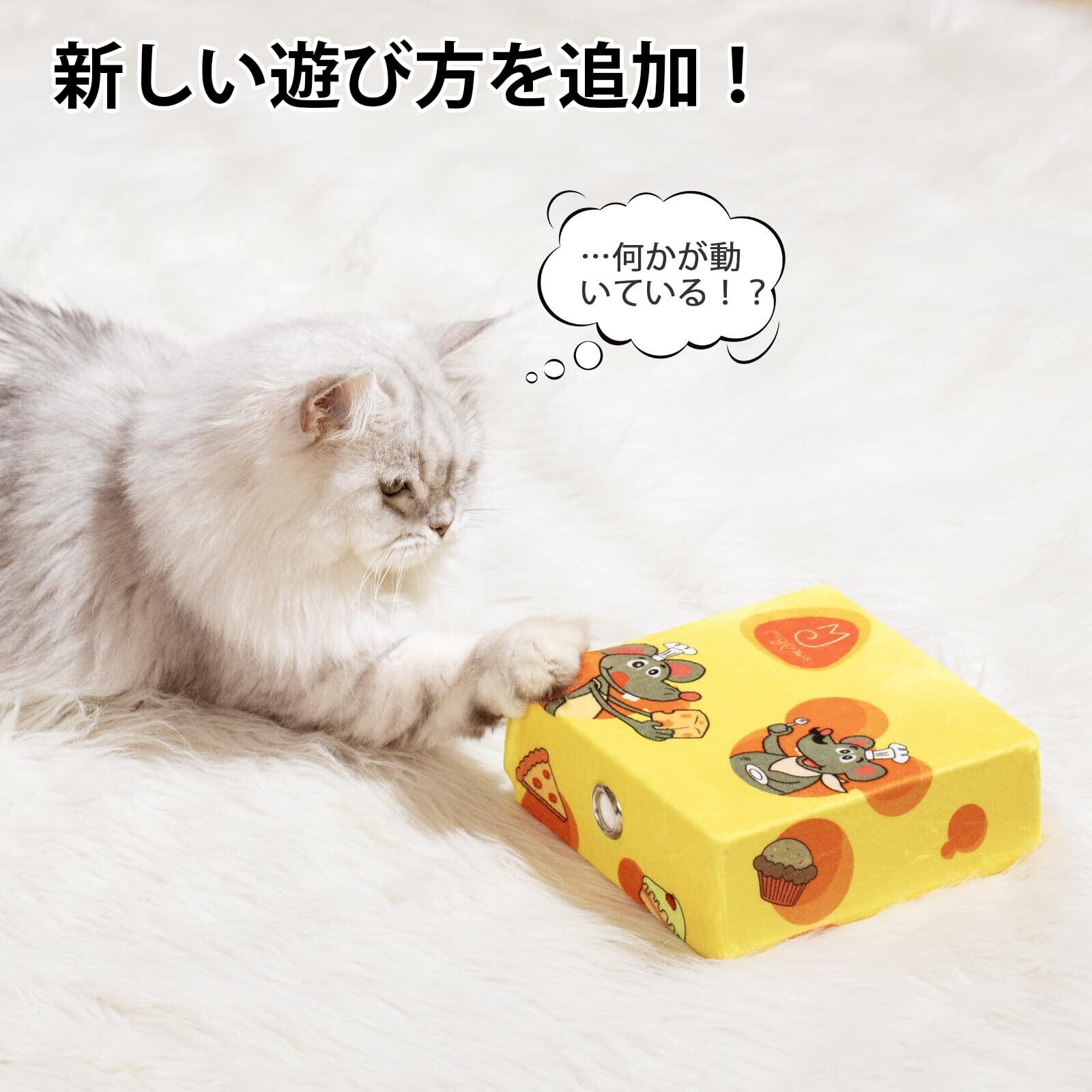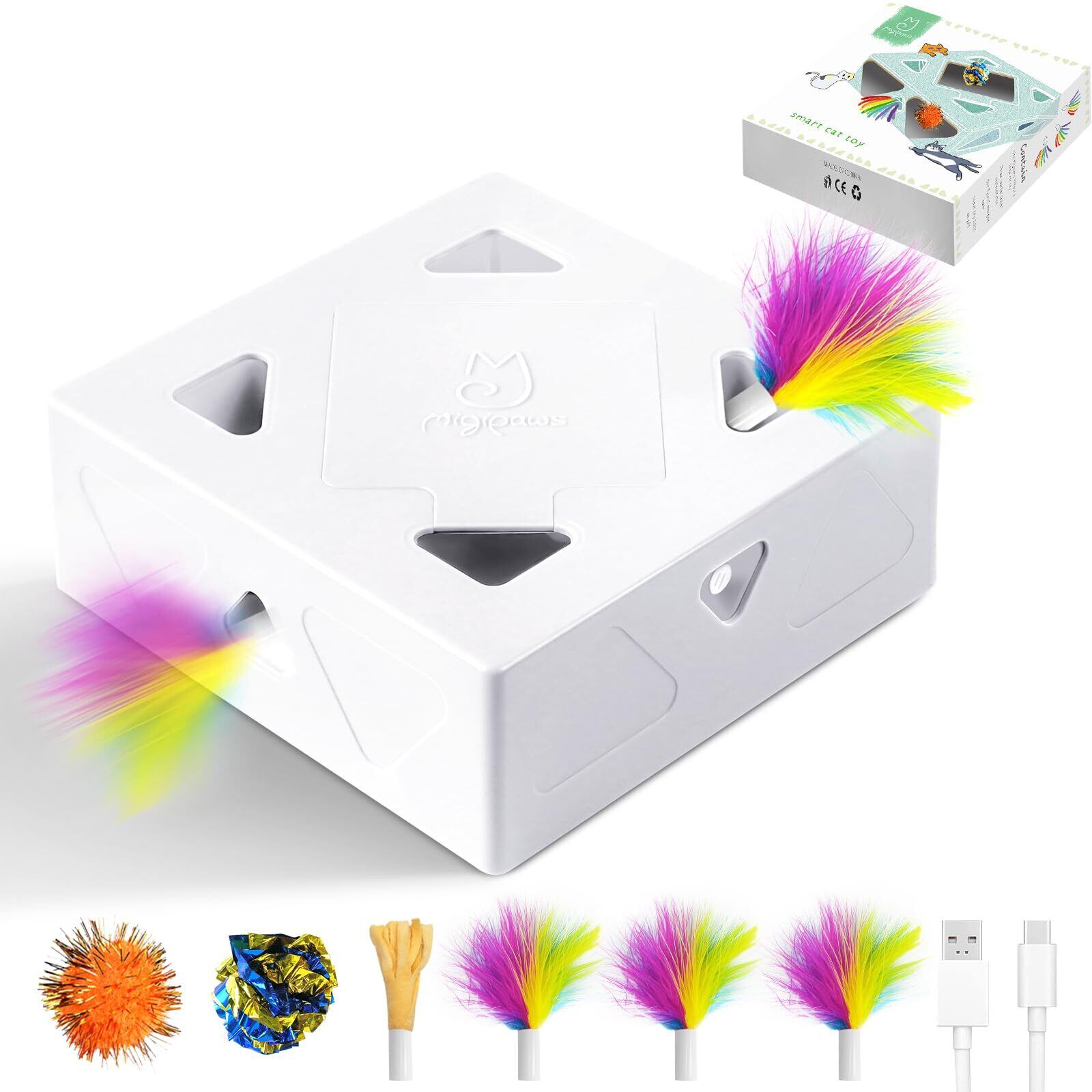 ミギポーズ(Migipaws) 猫 おもちゃ 一人遊び 猫のおもちゃ 自動 猫じゃらし 電動 猫おもちゃ 人気 子猫 USB充電式 近接センサ付 cat toy ネコ 動くおもちゃ 猫用モグラ叩き 交換用羽付き キャットボックス2 (布カバー付き)