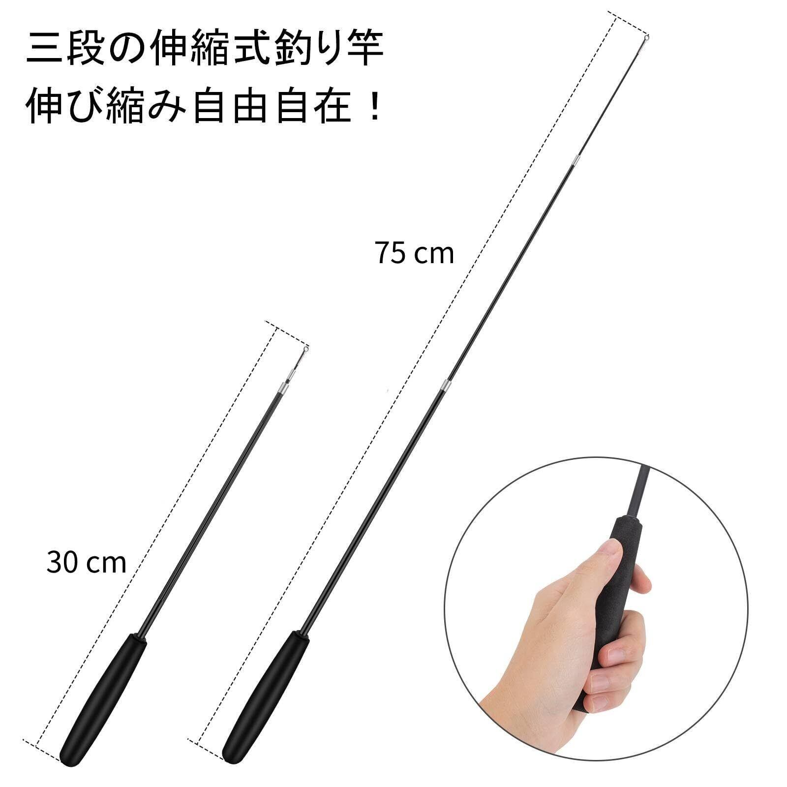 【2種釣糸】 長い釣り糸 :立ち姿勢で、短い釣り糸: 椅子などに座った姿勢で。