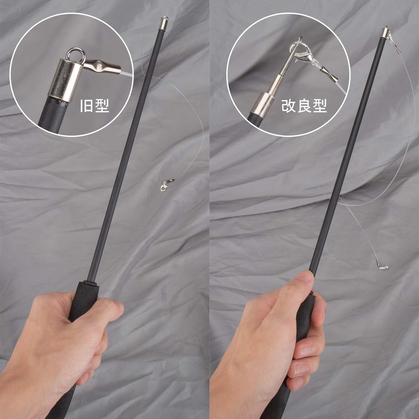 【三段の伸縮式釣り竿】伸び縮み自由自在!釣り竿は37cmから95cmまで伸び縮みでき、、飼い主さんが動かなくても猫ちゃんがしっかり遊べます。釣り竿は短く出来るので収納が簡単。