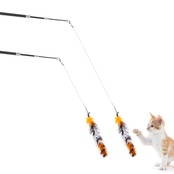 【簡単に操作】 おもちゃをロープの上に接続し、猫の前で羽のおもちゃをゆっくりと動かします。