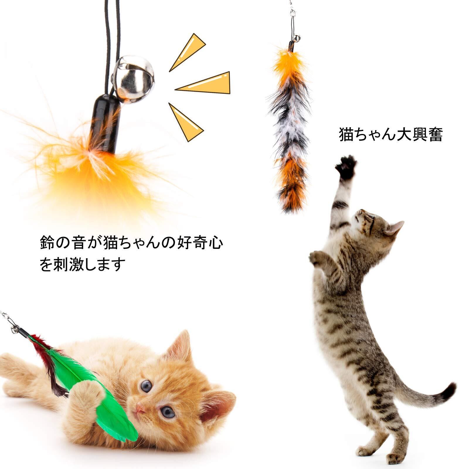 【楽しい】 鳥の羽は天然で無毒無害、ソフトでふわふわです。振ると羽音がして猫ちゃんの好奇心をくすぐります。11個交換用おもちゃがあるので、猫が飽きずに楽しんで遊びます。