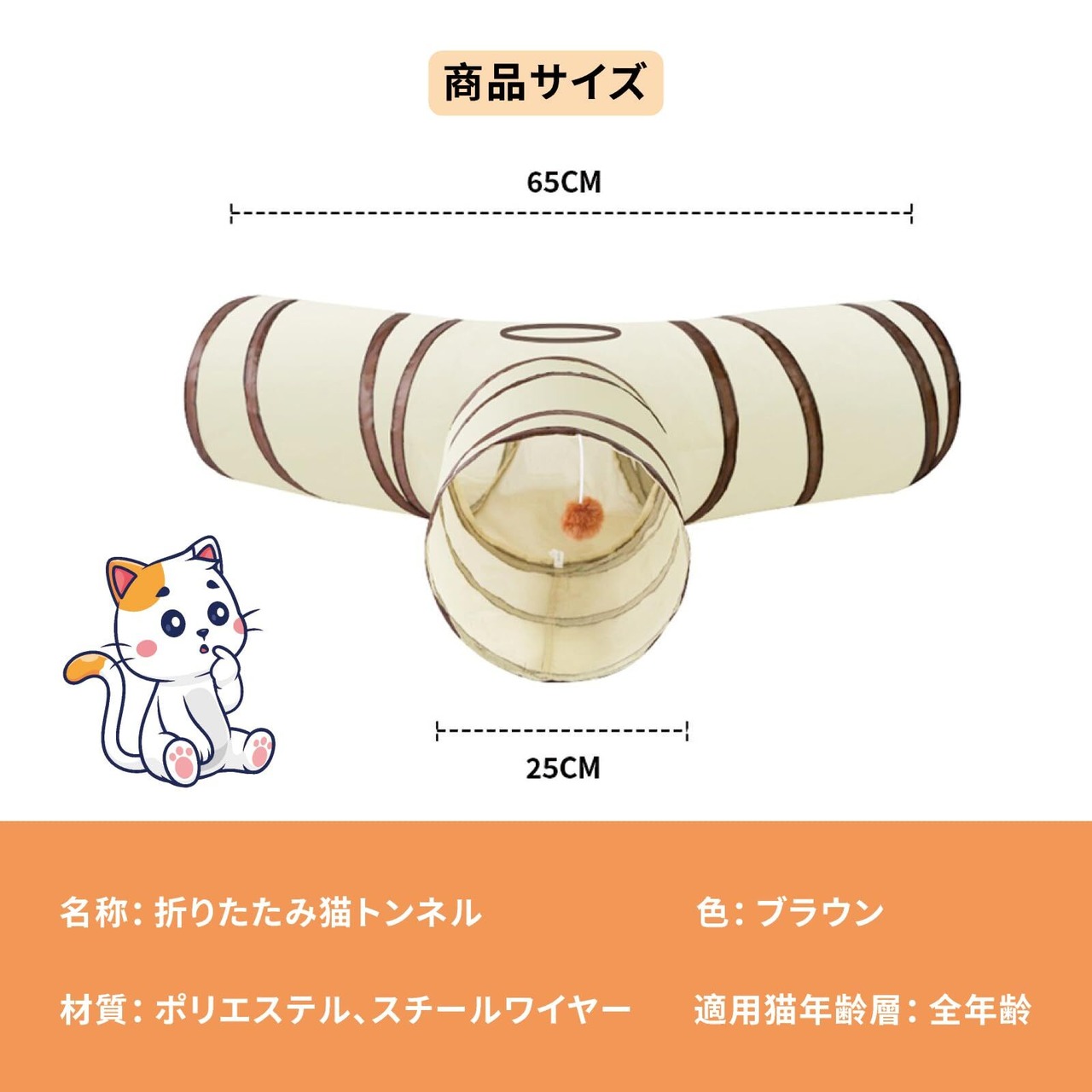 猫トンネル トンネル好きペット用おもちゃ 折りたたみ式 キャットトンネル おもちゃボール付き 猫の遊び場、運動不足解消、ストレス発散 にゃんこ一人遊び (Y型)