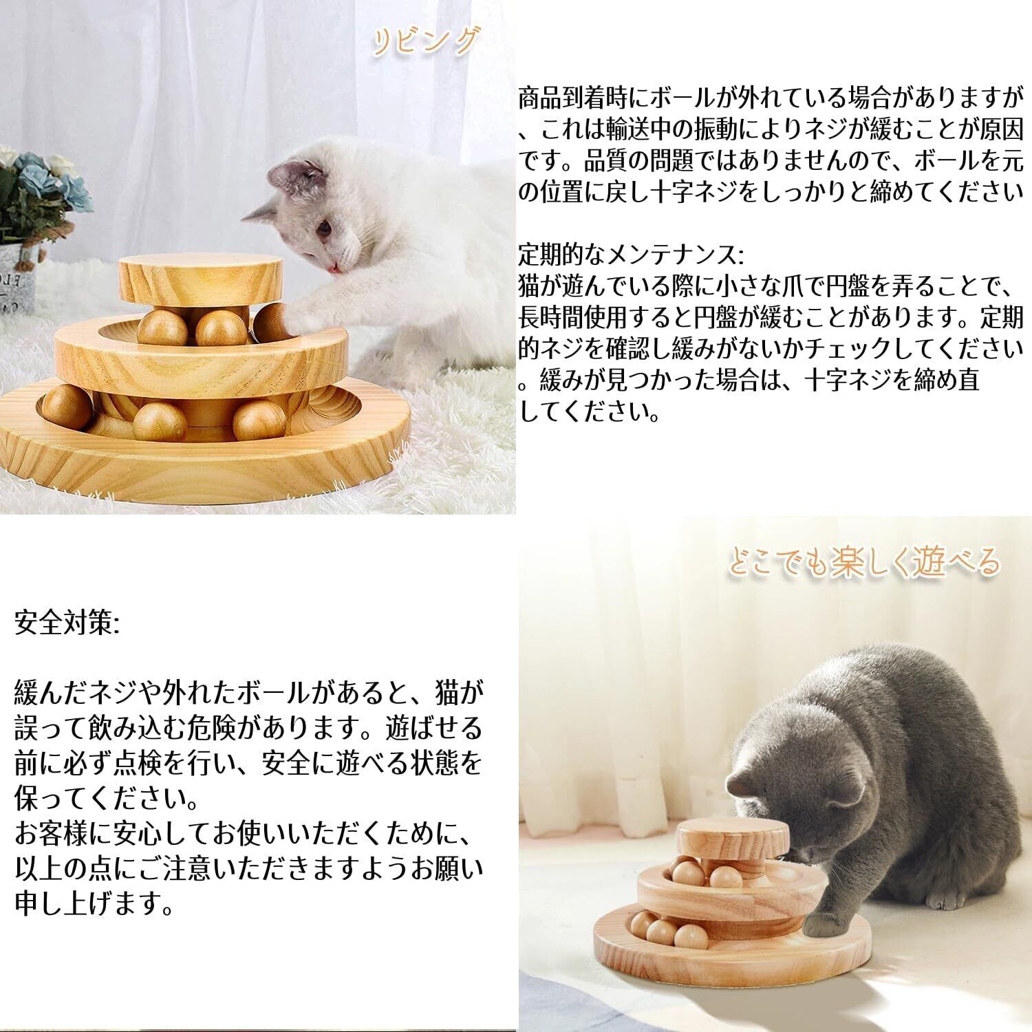 ●猫の安全を守る設計: 角はすべて滑らかに磨かれており、木製のおもちゃが猫のデリケートな肌を傷つけることがないように考慮されています。さらに、ボールがぶつかる際の音も優しいため、猫ちゃんが遊ぶ音が飼い主の生活にも心地よく溶け込みます。