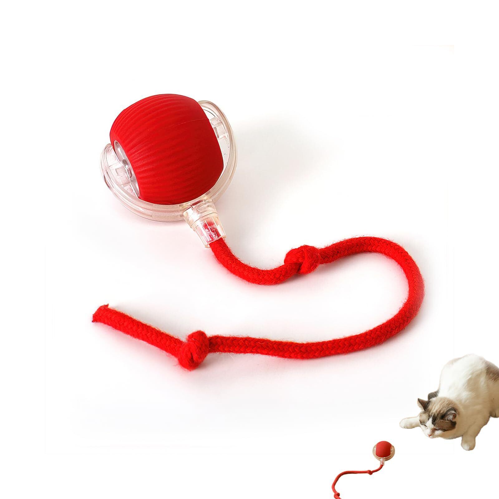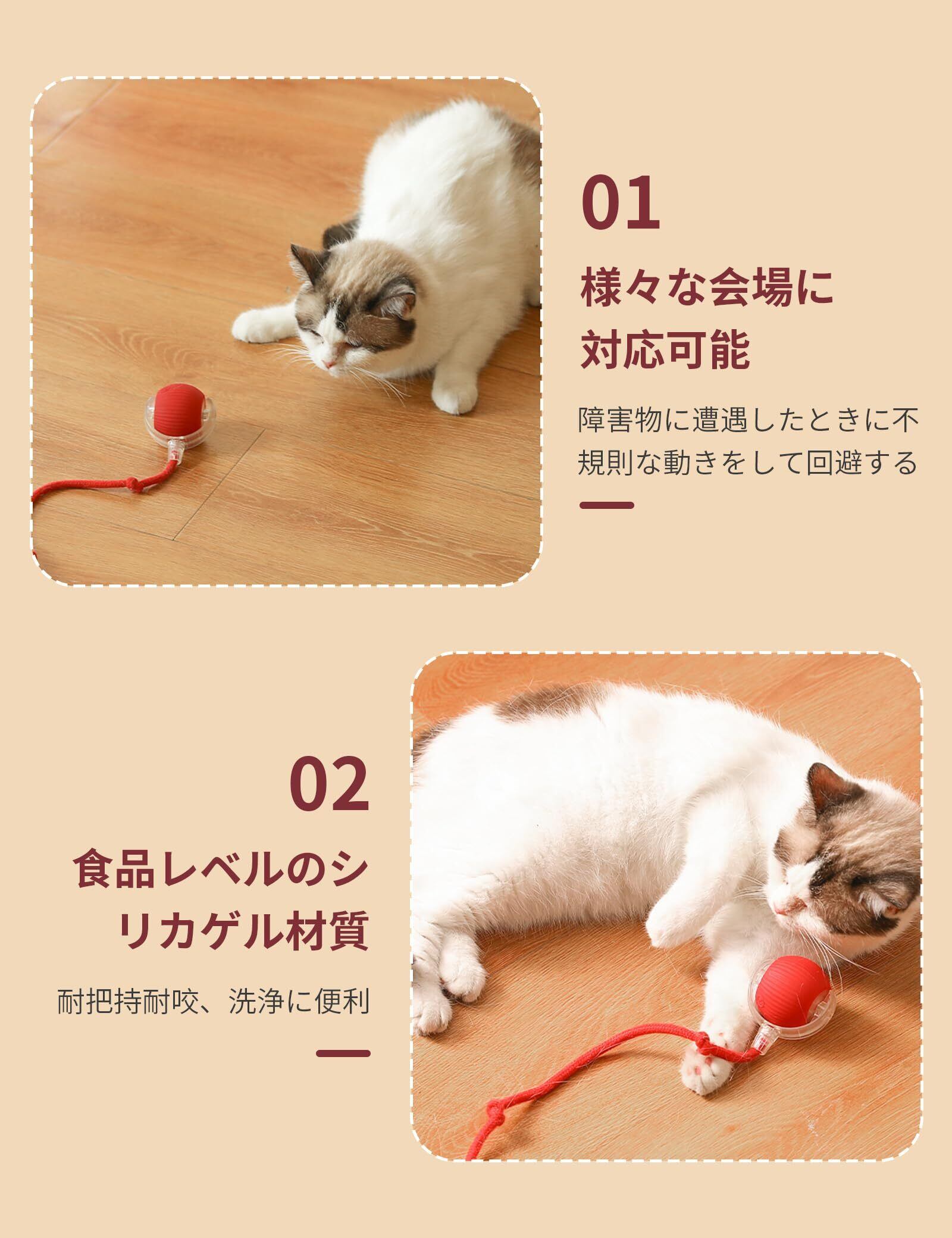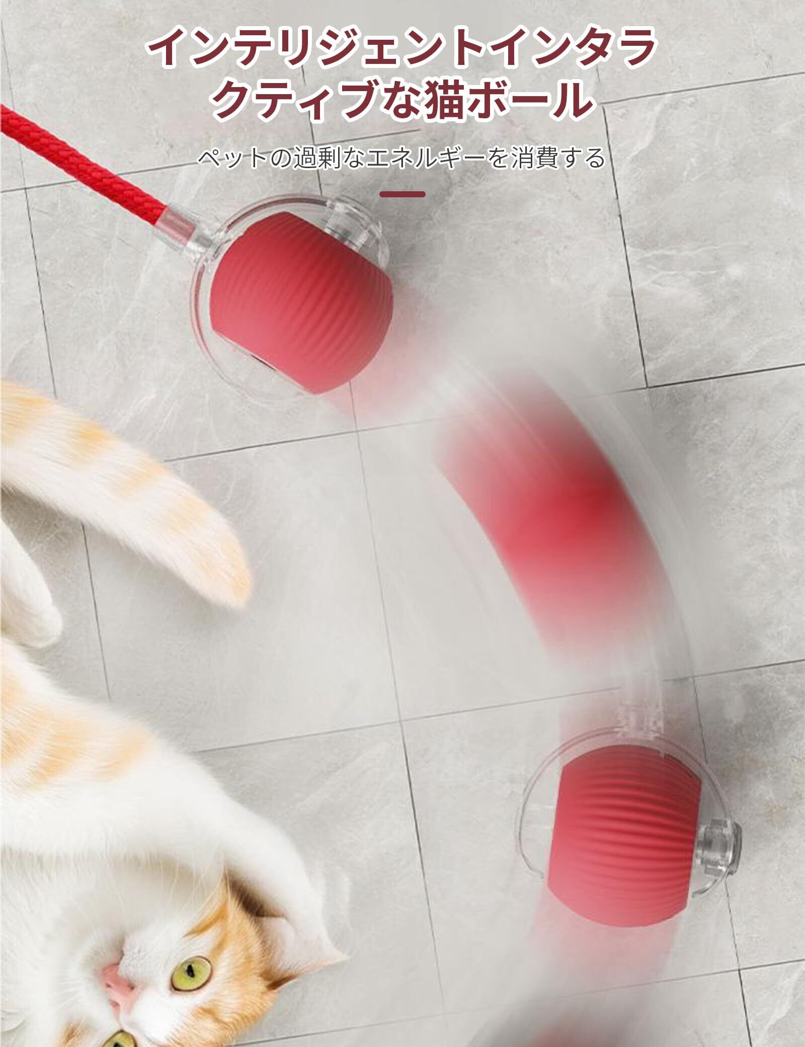 aninako 猫 おもちゃ 自動 動く猫ボールおもちゃ 猫 おもちゃ ボール 電気自動おもちゃは USB 充電付き自動 360 度回転ローリング ボール インタラクティブな猫用おもちゃボール 猫用長い尾付き電動自動おもちゃ 猫遊び道具 ストレス解消 運動不足解消 (レッド)