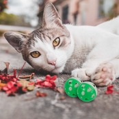 シンプルなボールでも鈴が入ってるだけで今までのおもちゃに飽きてた猫もチリン、シャリンっと鈴の音に興味深々。