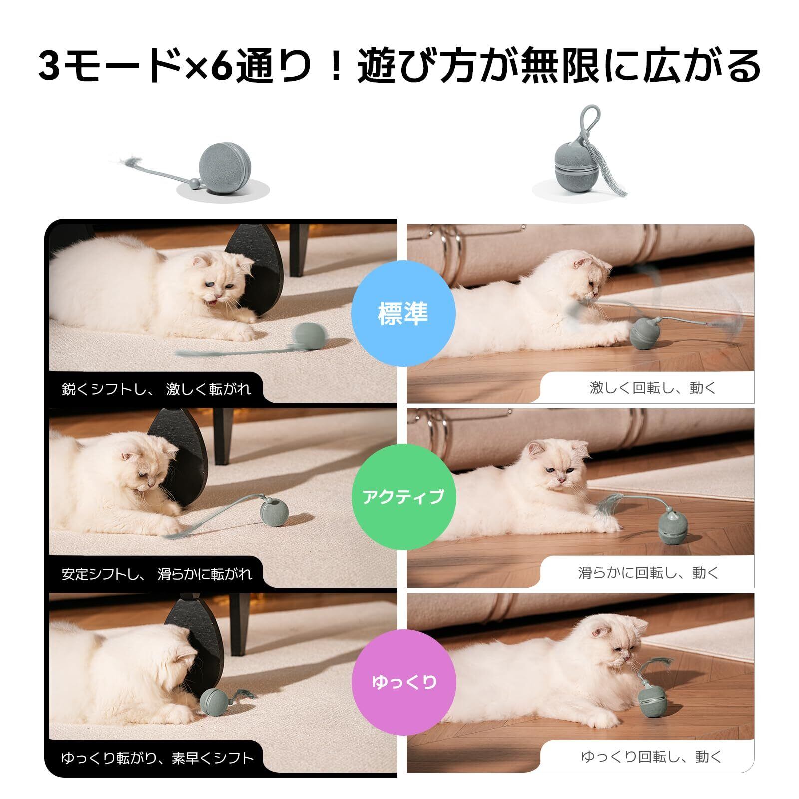 【3モード×2シェルで6種類の遊び!単調な遊びはもう終わり!】 3つのモード(標準モード,アクティブモード,ゆっくりモード)&2シェルを組み合わせることで、、実に6種類以上の遊び方が楽しめます。不思議な動きで、猫の狩猟本能をくすぐります。猫の性格や、その日の気分に合わせて、愛猫が一番喜ぶ遊び方を見つけてみてください。新しい組み合わせに猫も飼い主もワクワク間違いなし!