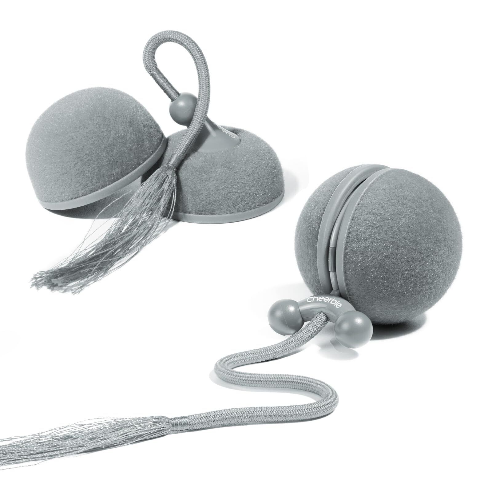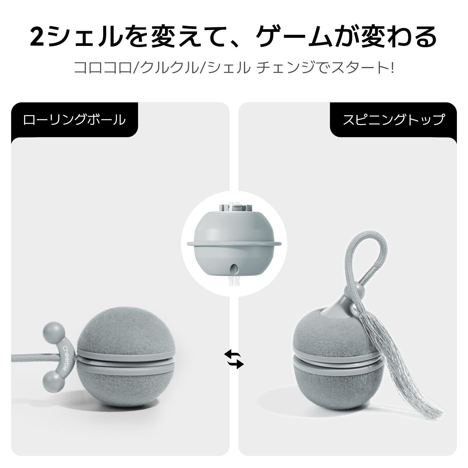 Cheerble 猫 ボール 自動 猫玩具 猫おもちゃ 動く しっぽ付き コマ型シェル付き 3モード調整可能 鳴き声搭載 Type-C充電式 収納バッグ付き 一人遊び ストレス解消対策 (グレー)