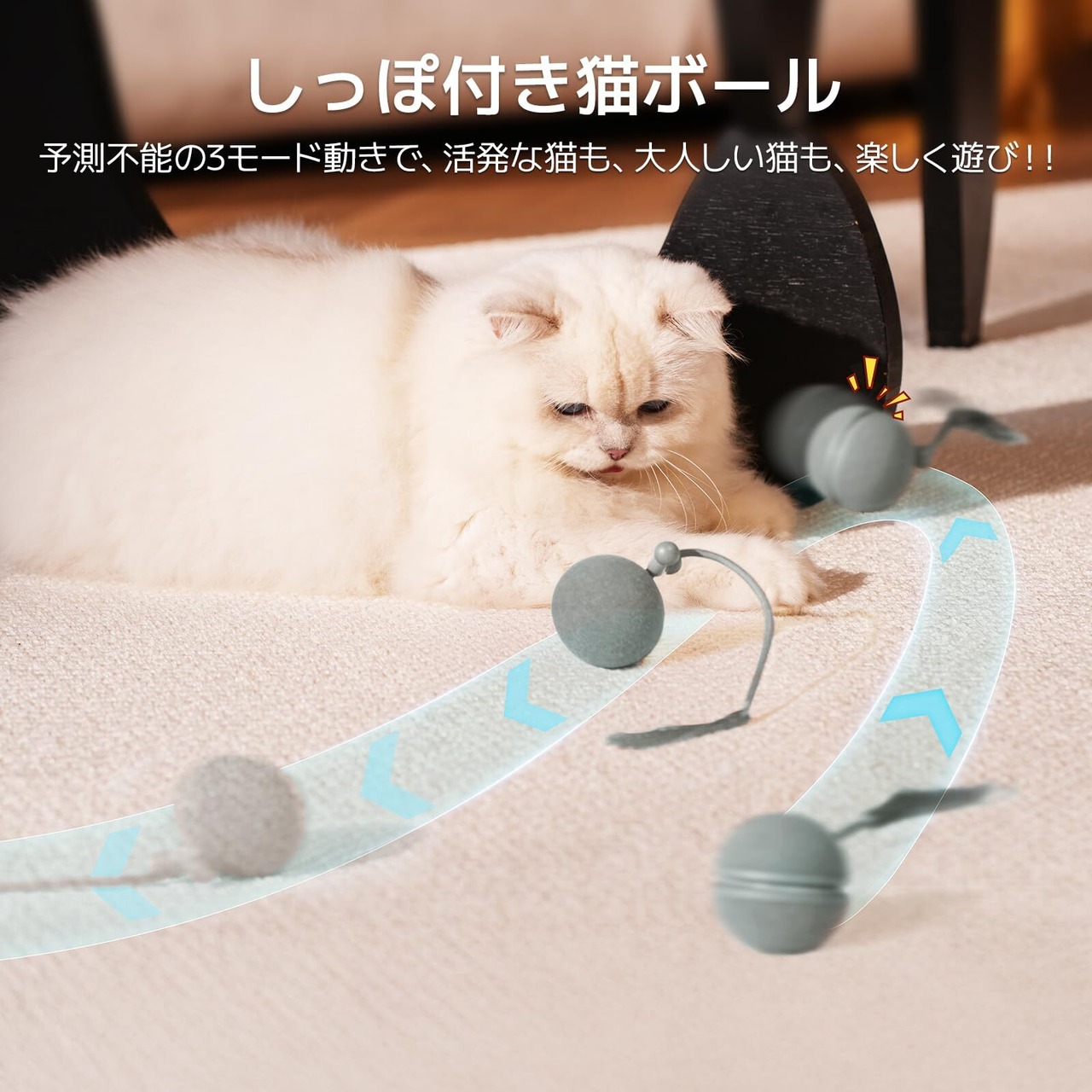 【ロープ型猫おもちゃ!本物の獲物みたい!】:新設計された魅力的なロープ型しっぽは、不規則に揺れると、猫の狩猟本能をくすぐります。ただ走るだけじゃない!不規則に転がったり、突然止まったり、振動したり、楽しみが広がります。愛猫の本能的な遊びを存分に楽しませてあげましょう。