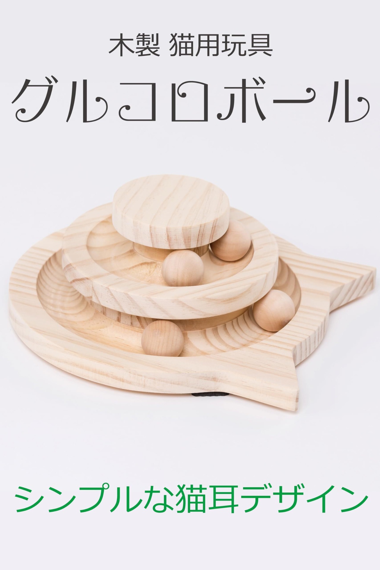 猫の友社 木製 グルコロボール 猫用おもちゃ 猫用玩具 ボール 組立不要 回転 猫じゃらし 天然素材 安全素材