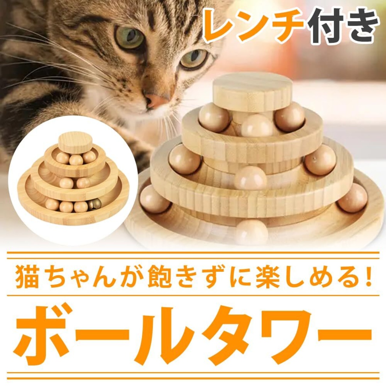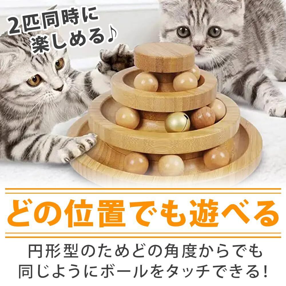 mofulafu 猫用おもちゃ ボール回転盤 タワー 滑りにくい ベル付き パンチ 子猫/成猫 室内運動 (3層タイプ)