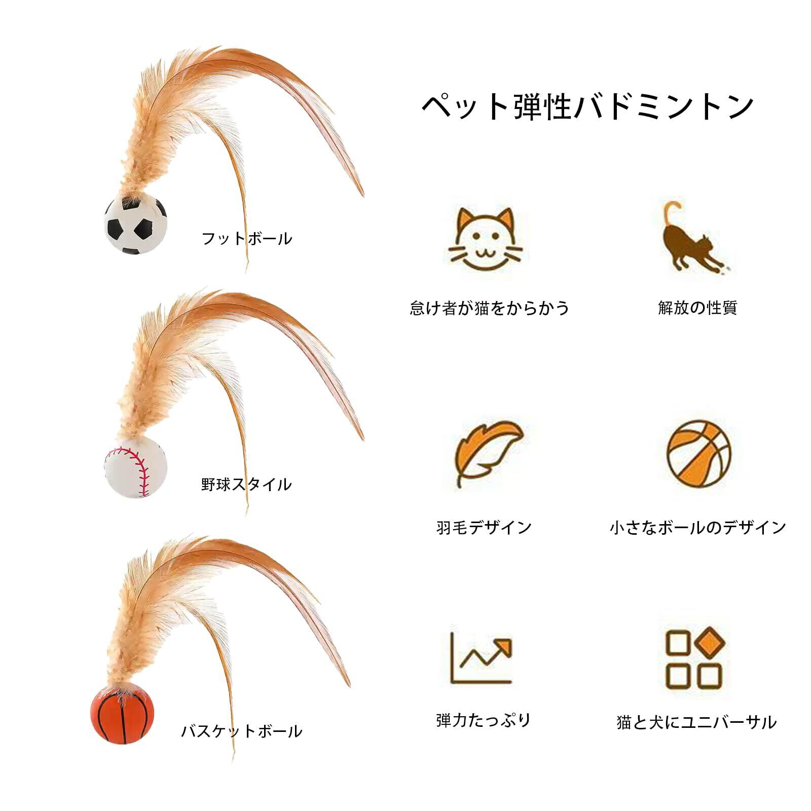 【自然な本能を呼び覚ます】猫のおもちゃボールは羽と小さなボールで設計されており、ペットの注意を効果的に引き付け、追跡本能を刺激し、活発な遊びを促進します。