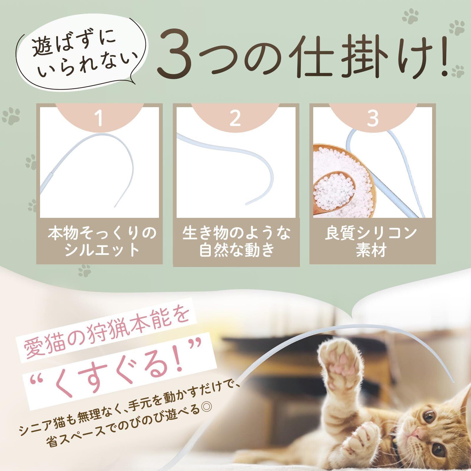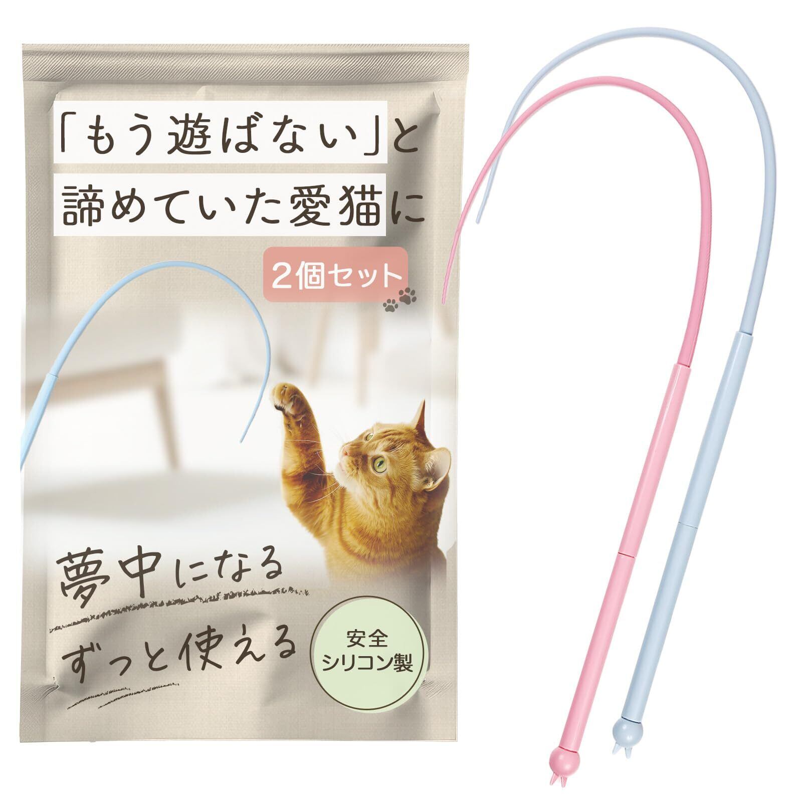 猫 じゃらし ねこ おもちゃ 玩具 シリコン製 ネズミ しっぽ 軽量 壊れにく 運動不足 ストレス解消 成猫 シニア 2本セット ペット用品