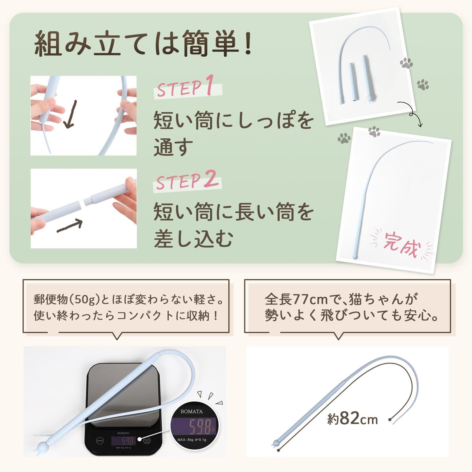 サイズ:全長約82cm/取手約51cm/しっぽ約31cm/軽量:約52g