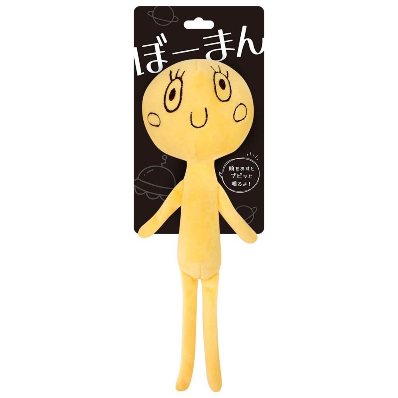 棒人間のぬいぐるみです。大きな頭を押すとプピッと鳴るよ!