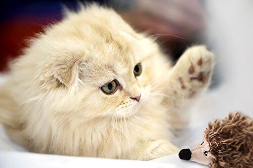 ●ユニークな表情の動物に少し触れるだけでリアルな鳴き声を奏でるサウンドチップ入りのキャットトーイ。