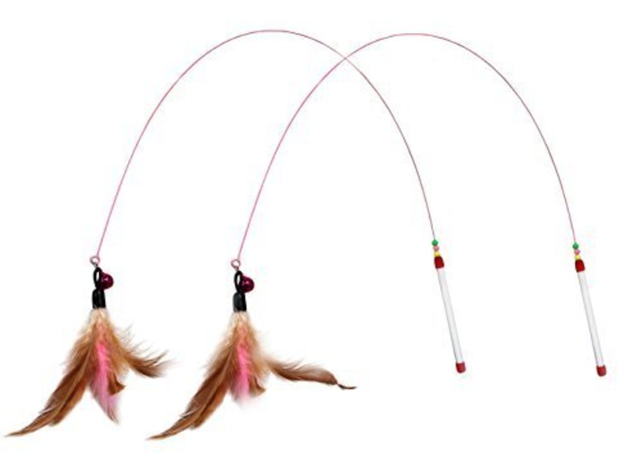 MerryTi 猫おもちゃ 猫じゃらし 天然鳥の羽棒鈴付き 羽根 2個入り