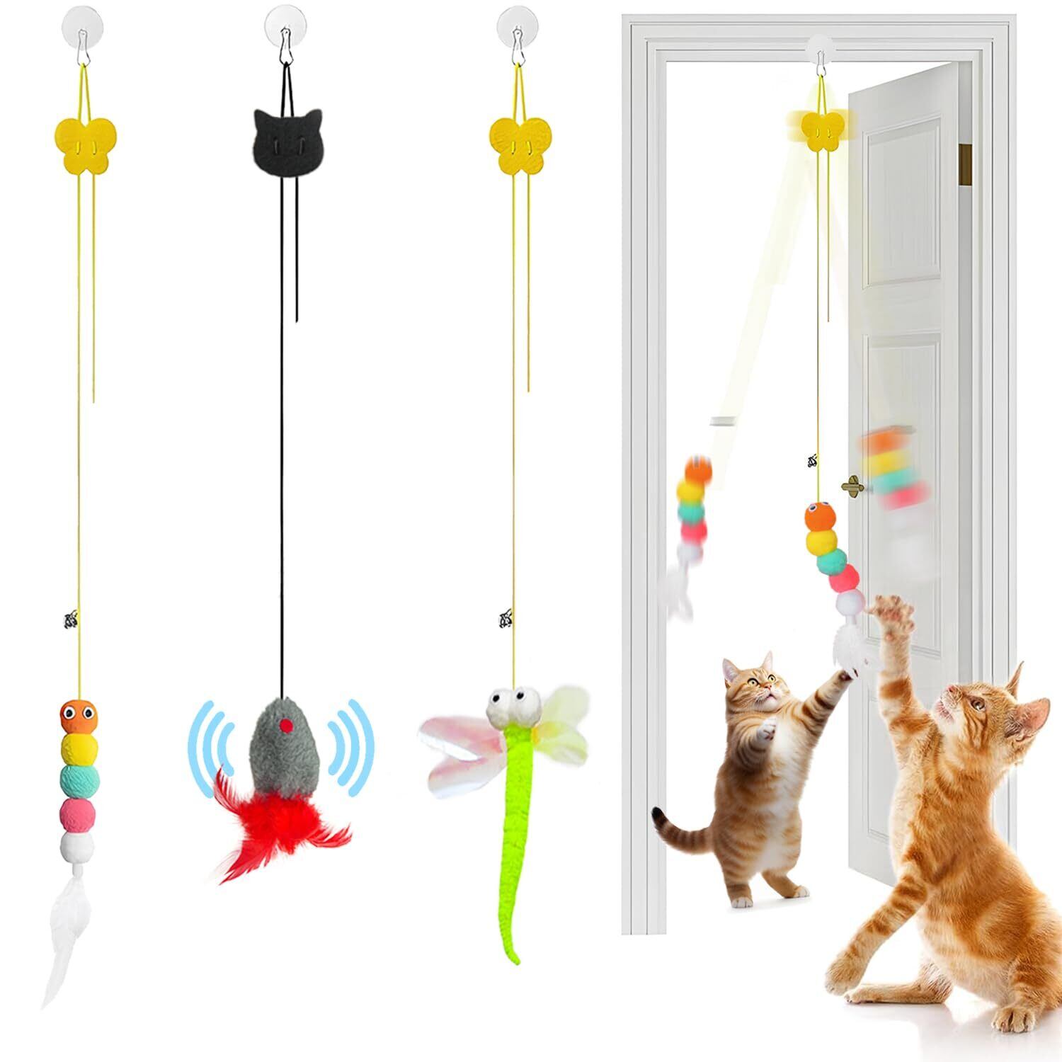 Saikoo 猫じゃらし 【ぶら下げる】 一人遊び 飽きない 猫 おもちゃ 鈴付き 軽量 無毒で安全 猫 玩具 運動不足 筋力不足 ストレス解消 知恵トレー 狩猟本能を刺激 猫のおもちゃシニア猫 成猫 子猫用 ネズミ トンボ 羽3点セット