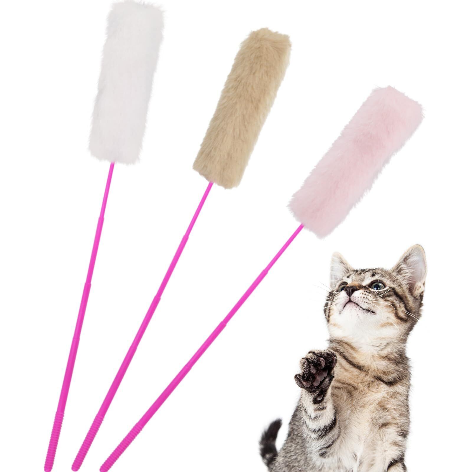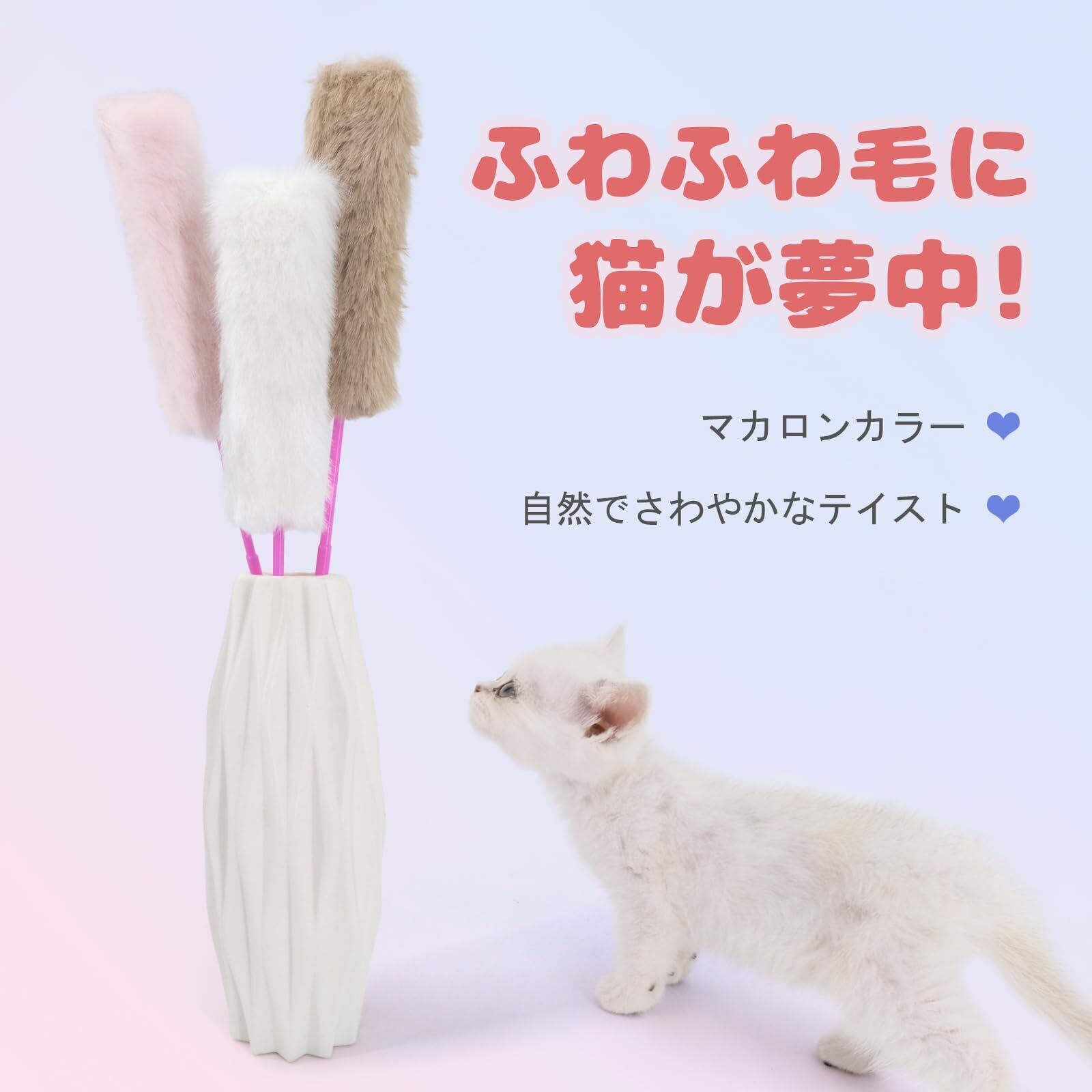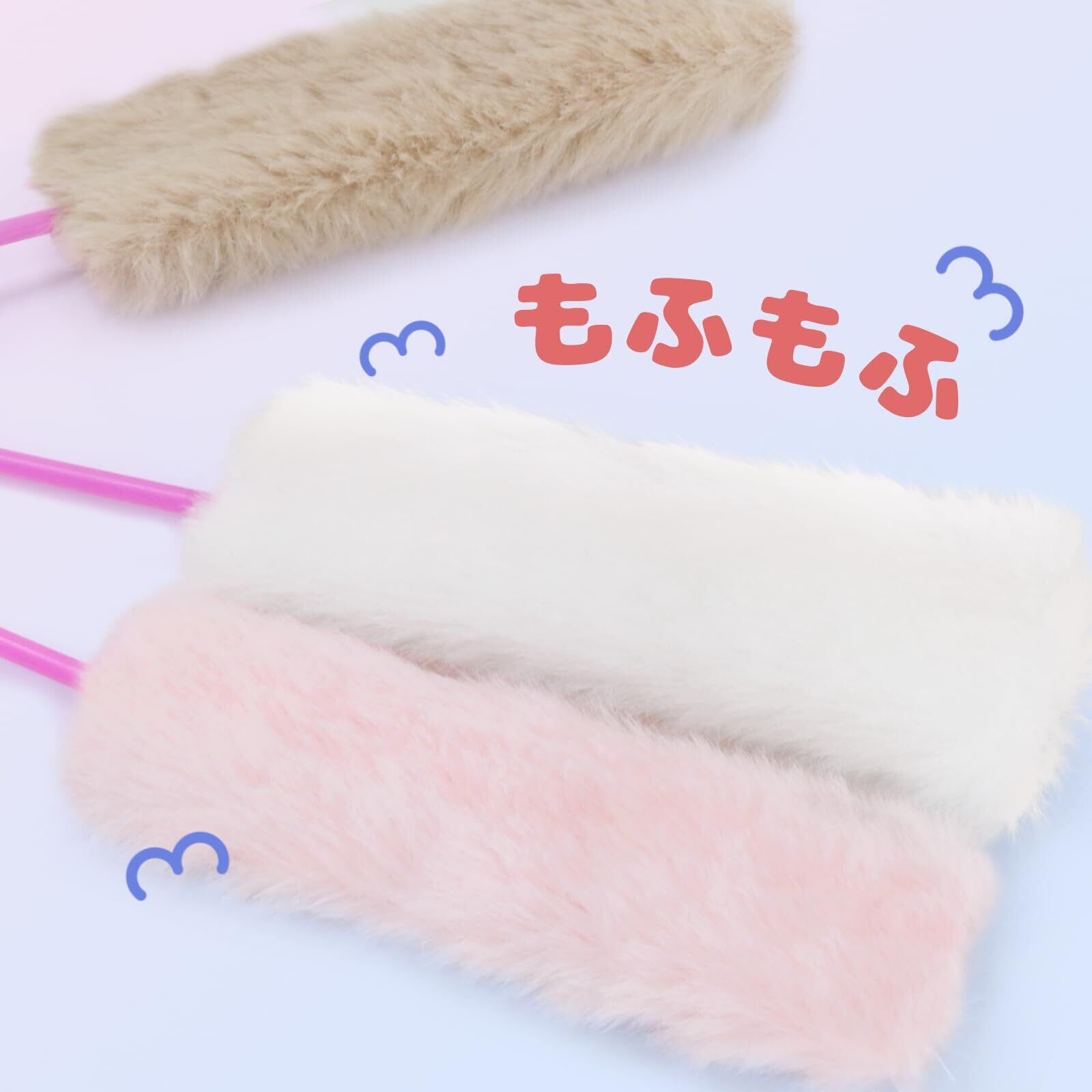3色のふわふわセット: ピンク・白・グレーの優しいカラーで、猫の興味を引きつけます。柔らかくて安全な仿うさぎ毛を使用!