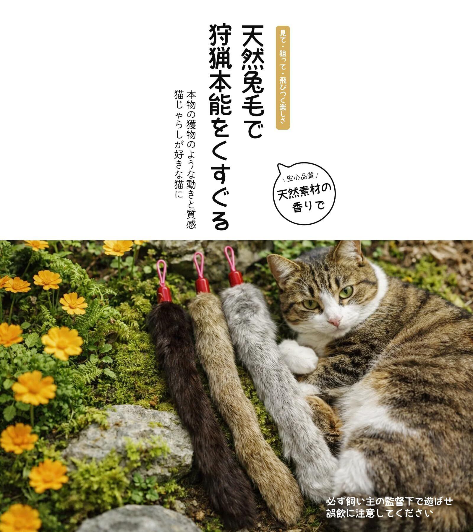 GHOSTCAT 猫じゃらし 猫 おもちゃ 3個交換 ねこじゃらし 人気 3色天然兔毛 猫じゃらし 1本釣竿付き 猫 おもちゃ 柔らかい毛料 安全素材 ネコ おもちゃ 多頭飼い 猫 ひとり遊び おもちゃ 運動不足解消 ストレス軽減 猫用品