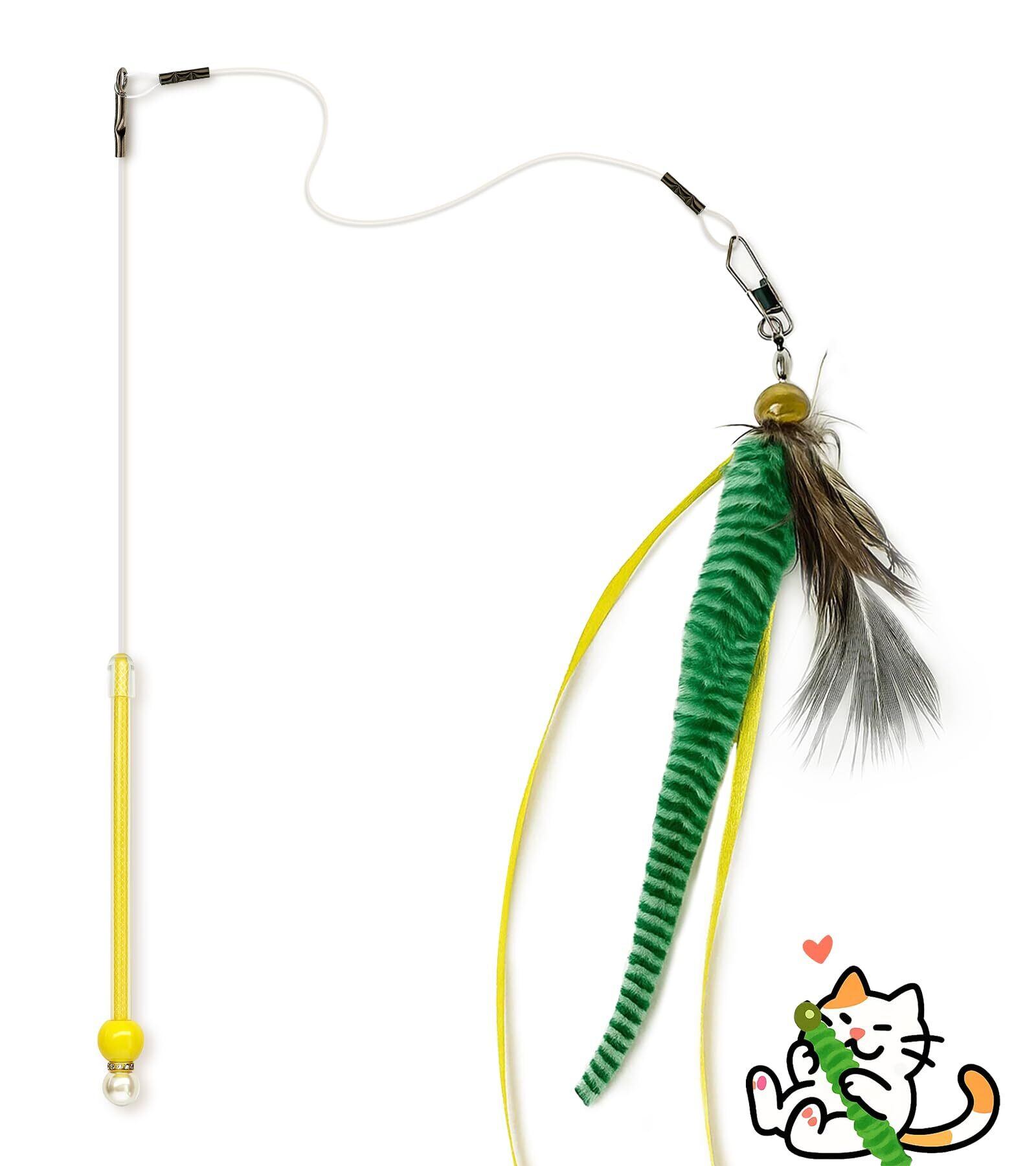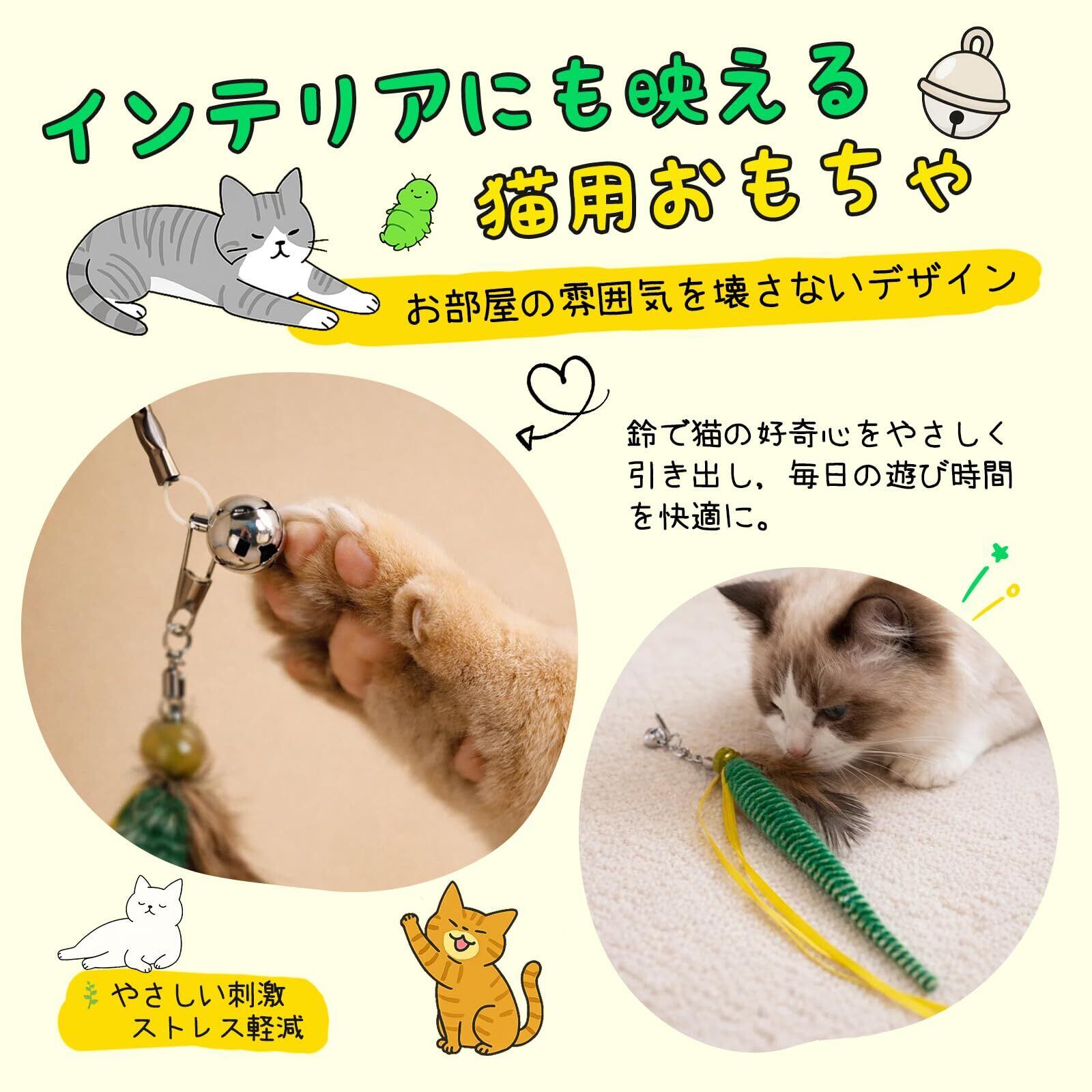 Serviteur 猫 おもちゃ 猫じゃらし 虫 羽 頑丈 釣り糸 ペット用品 鈴付き 猫 遊び道具 昆虫 噛むおもちゃ 歯のケア 金具付き釣り糸 交換用 プレゼント緑