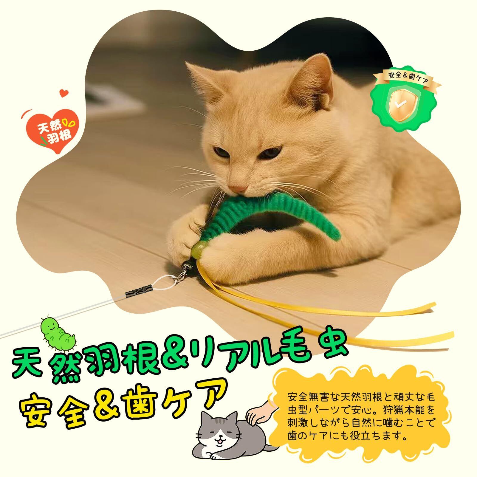 【天然羽根+リアル毛虫で安全&楽しい】 猫 噛むおもちゃの先端には無害で安全な天然羽根を使用し、猫が安心して遊べる設計。さらに、噛み応えのある頑丈な毛虫型パーツを組み合わせ、リアルな獲物感で猫の狩猟本能を刺激しながら歯のケアにも役立ちます。プレゼントにもぴったりです。