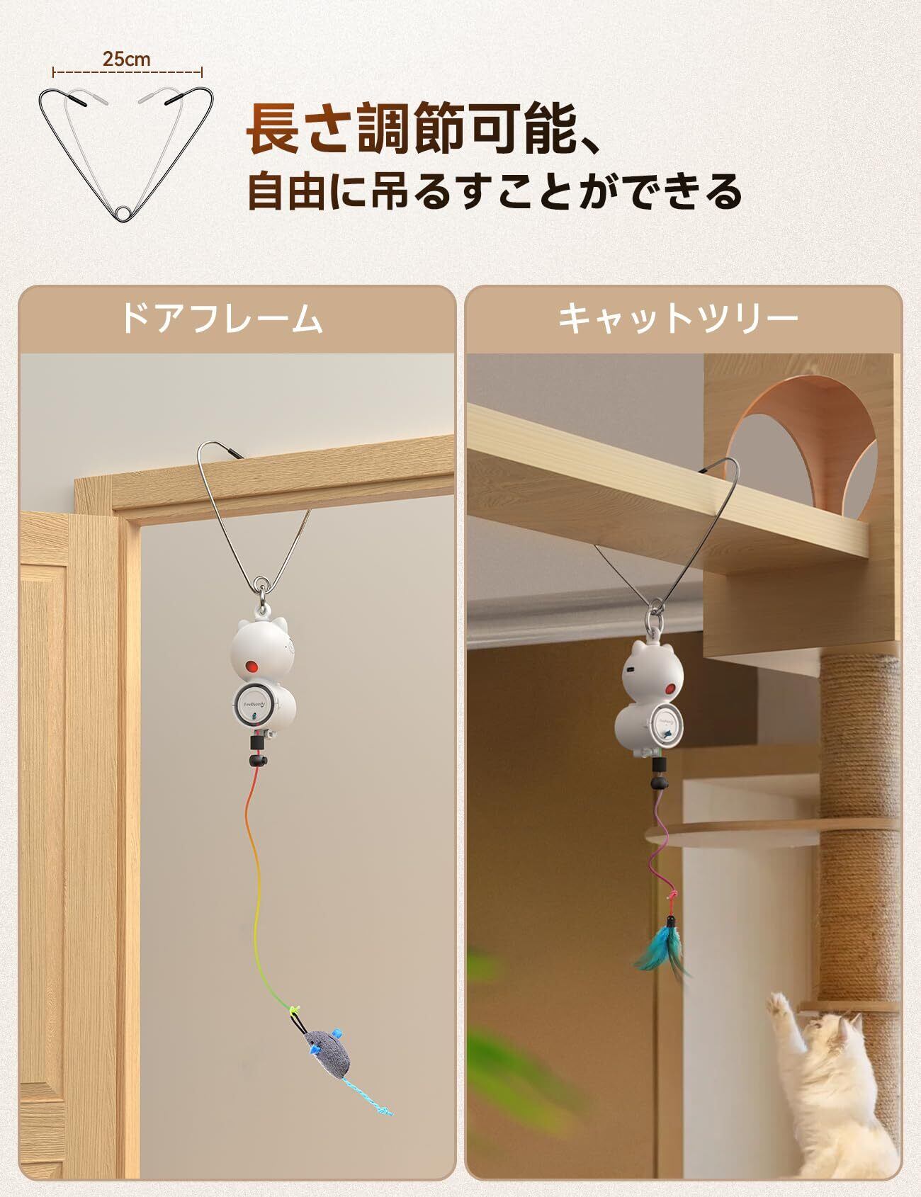 【一人遊び、主人ハンズフリーの電動おもちゃ】忙しい毎日を過ごして、猫ちゃんと一緒に過ごす時間がない?FEELNEEDY電動猫おもちゃをドア枠に掛けるだけで、猫が自分で遊び始めることができます。 飼い主がいなくても楽しめるので、遊びたい盛りの子猫や運動不足の成猫、シニア猫に特におすすめです。