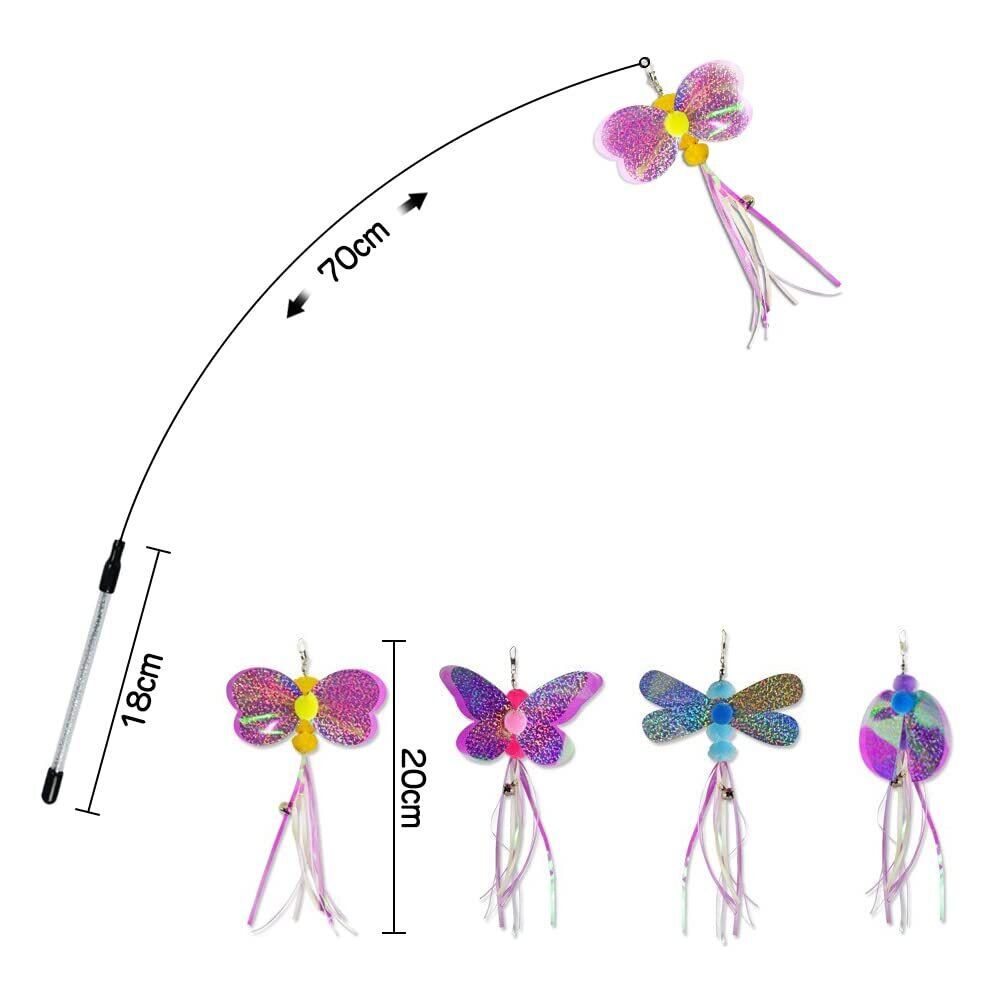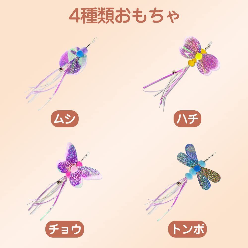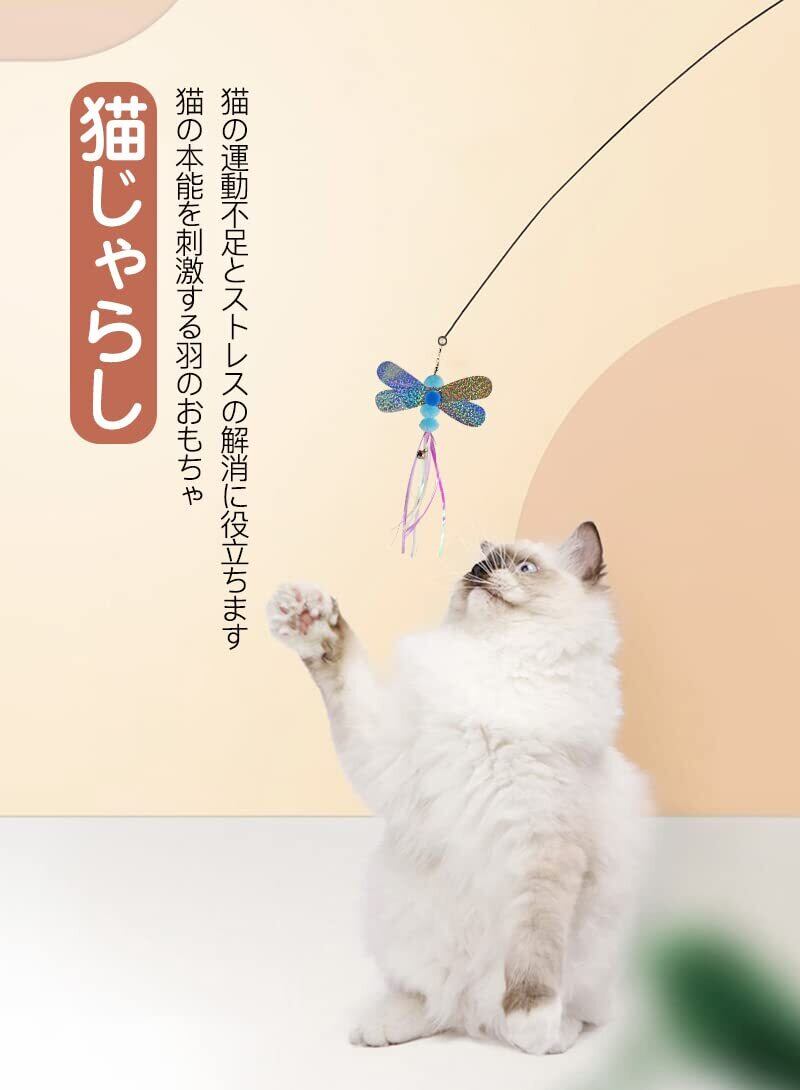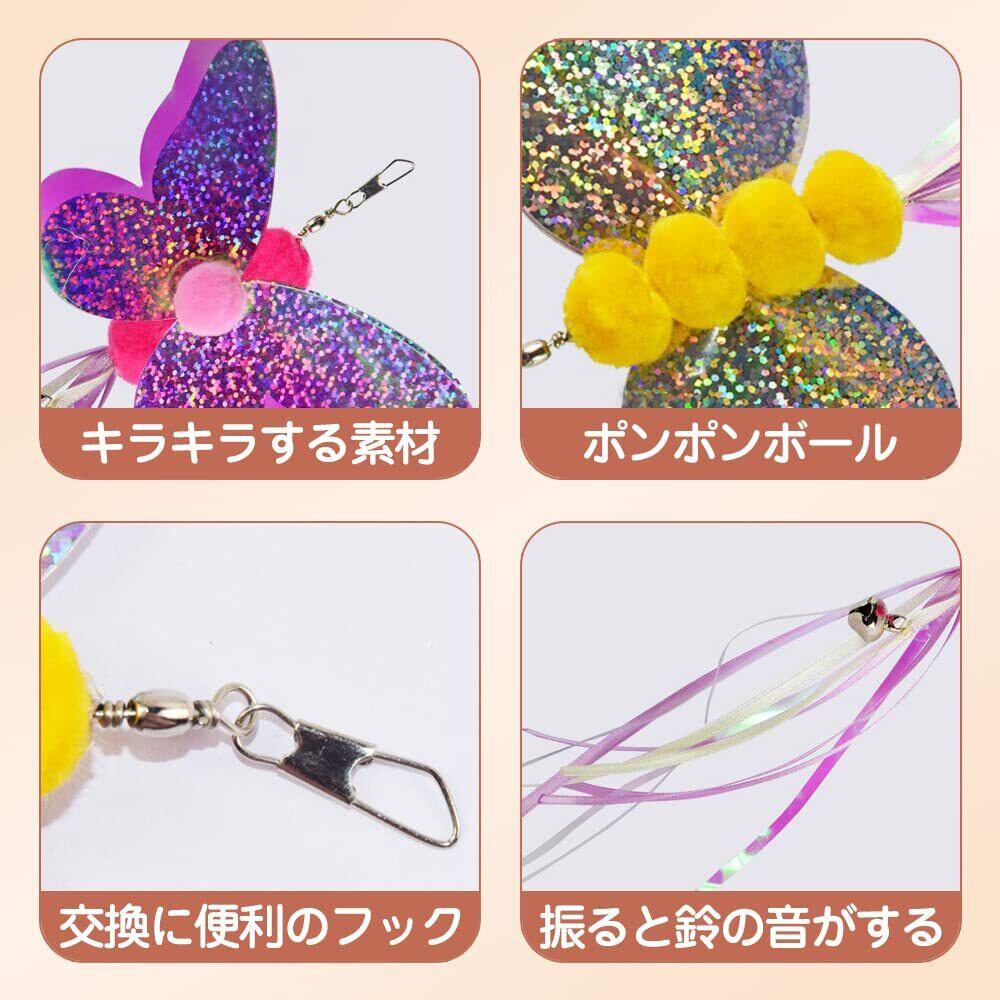 サムコス 猫のおもちゃ人気猫じゃらし 猫じゃらし 猫おもちゃ 伸縮できる釣り竿 愛玩動物用のおもちゃ 昆虫 釣り竿付き 運動不足解消 ストレス解消 面白い猫 (虹色)