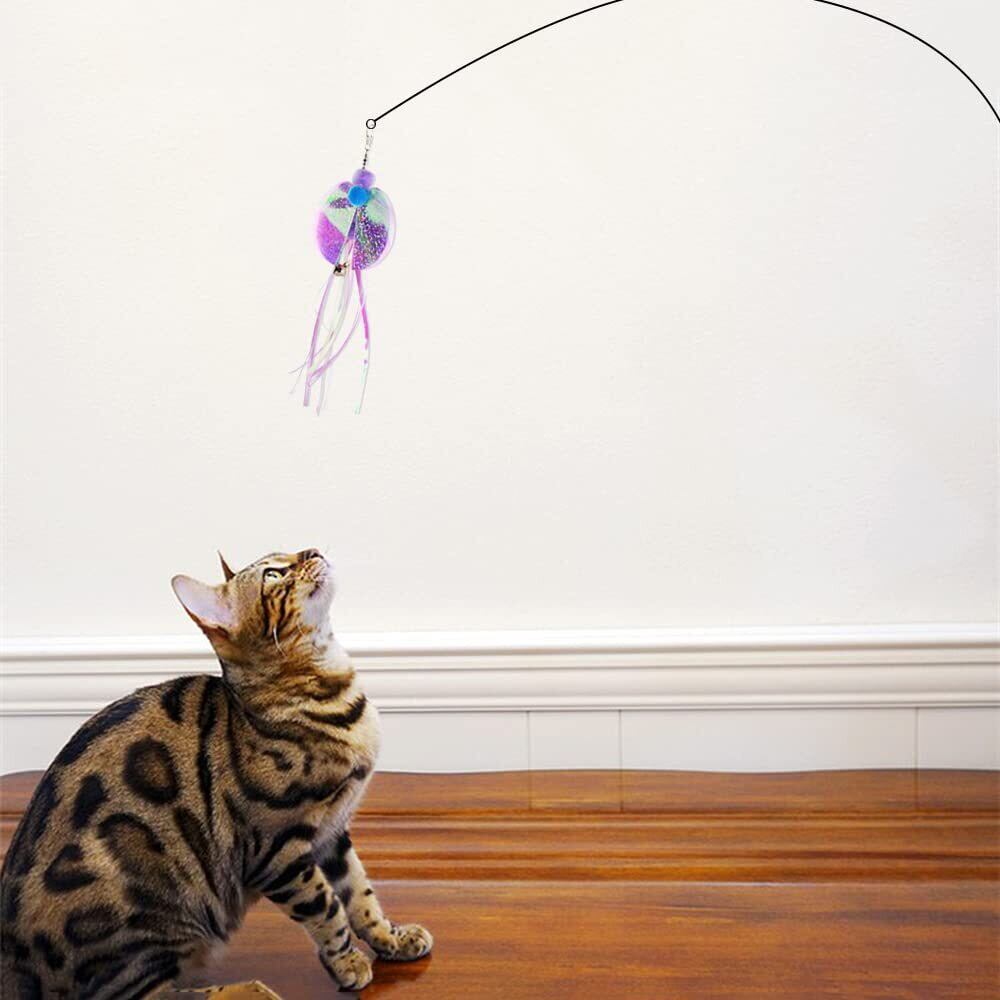 【好奇心を刺激】竿の先端におもちゃがぶら下がっているので、振り上げたり遠くへ飛ばしたりすると猫の好奇心を刺激しやすく、猫が跳ねたり、追いかけたりとアグレッシブに動きます。また、鈴付いているので、振ると鈴の音がしてさらに猫を興奮させます。