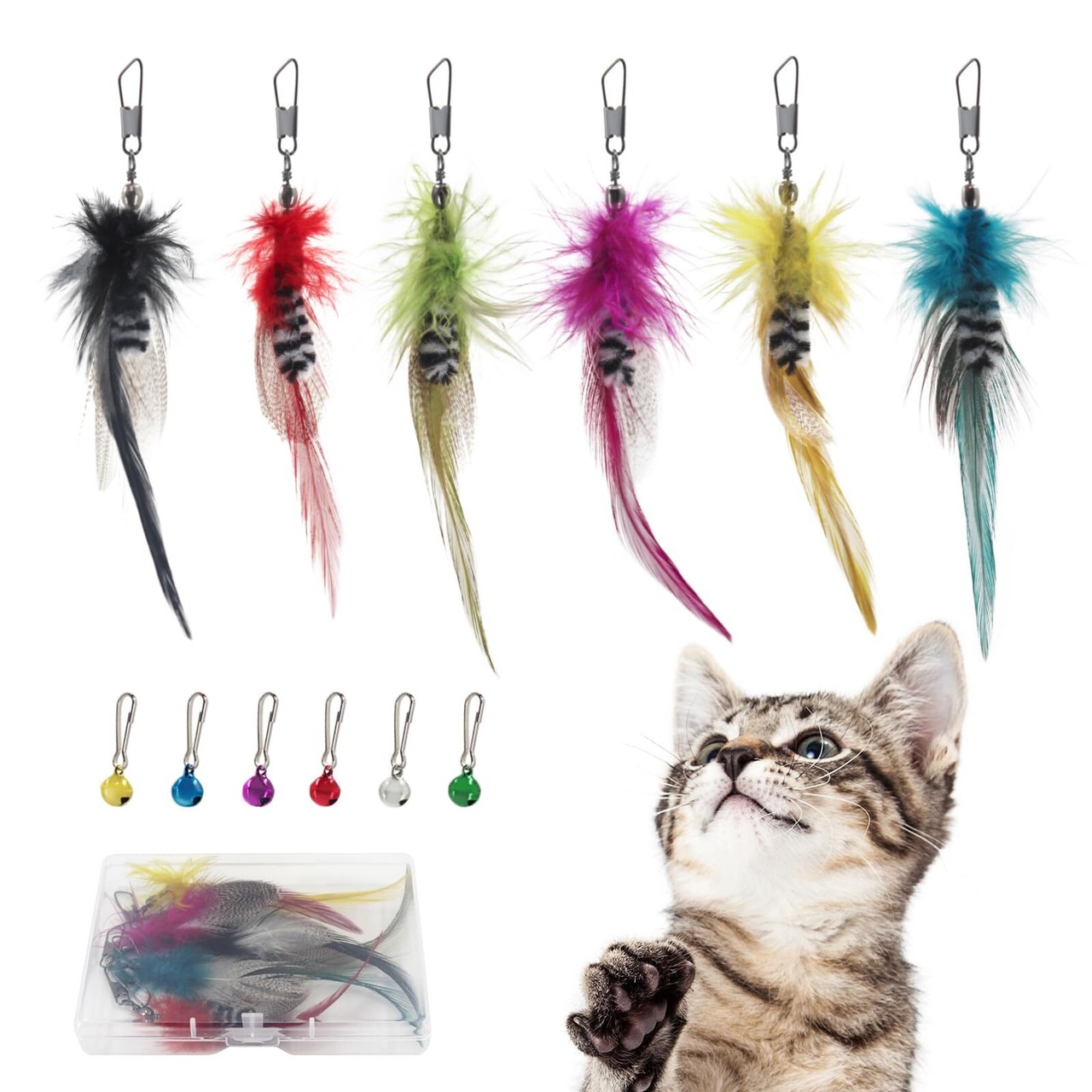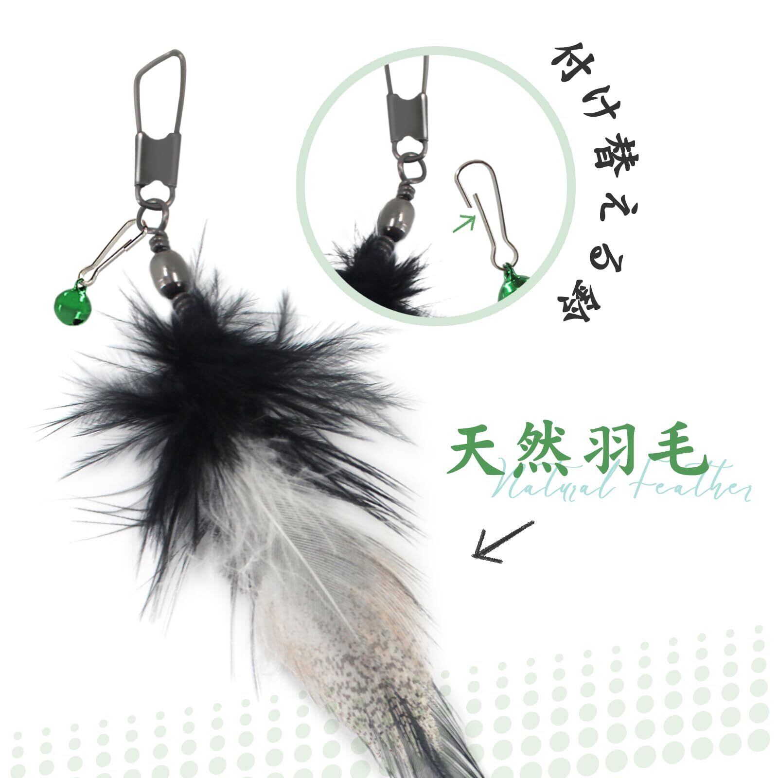 鈴付き:このおもちゃは鈴が六個を用意しており、鈴なしに、お静かに遊べます。付けると、じゃれると音がして猫の興味を引きやすくなって、猫は気が狂ったように追いかけます。鈴の音うるさいから、鈴を外せるのと鈴の誘いよいと好評の、お客様の声両方がありますのため、このおもちゃセットが鈴をおもちゃにかけないまま出荷状態で両方のお客様が満たされるセットです。