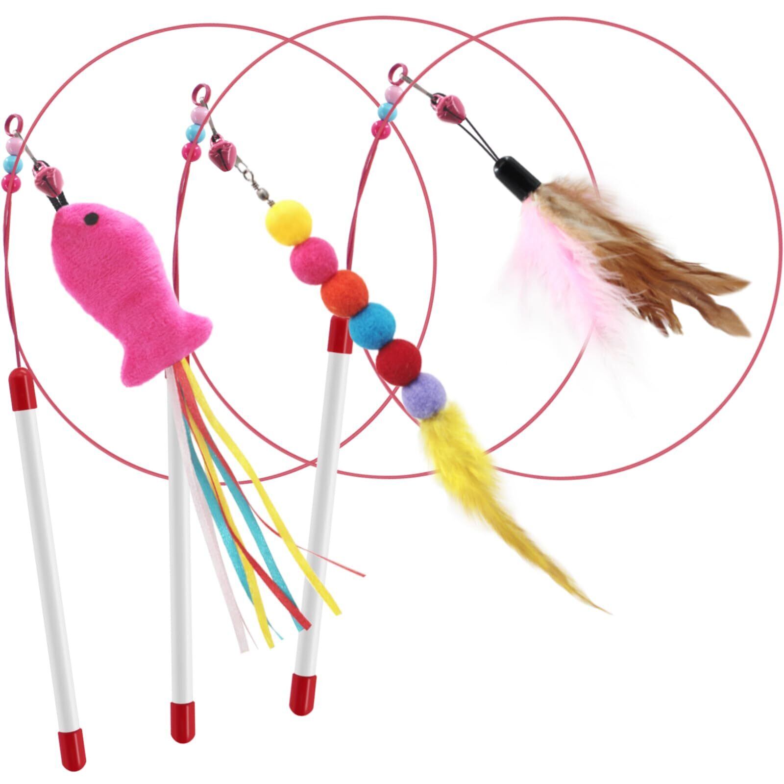 SONGWAY 猫じゃらし 3本セット 猫 おもちゃ ねこ玩具 ワイヤー 毛虫 羽 魚 プレゼント ギフト