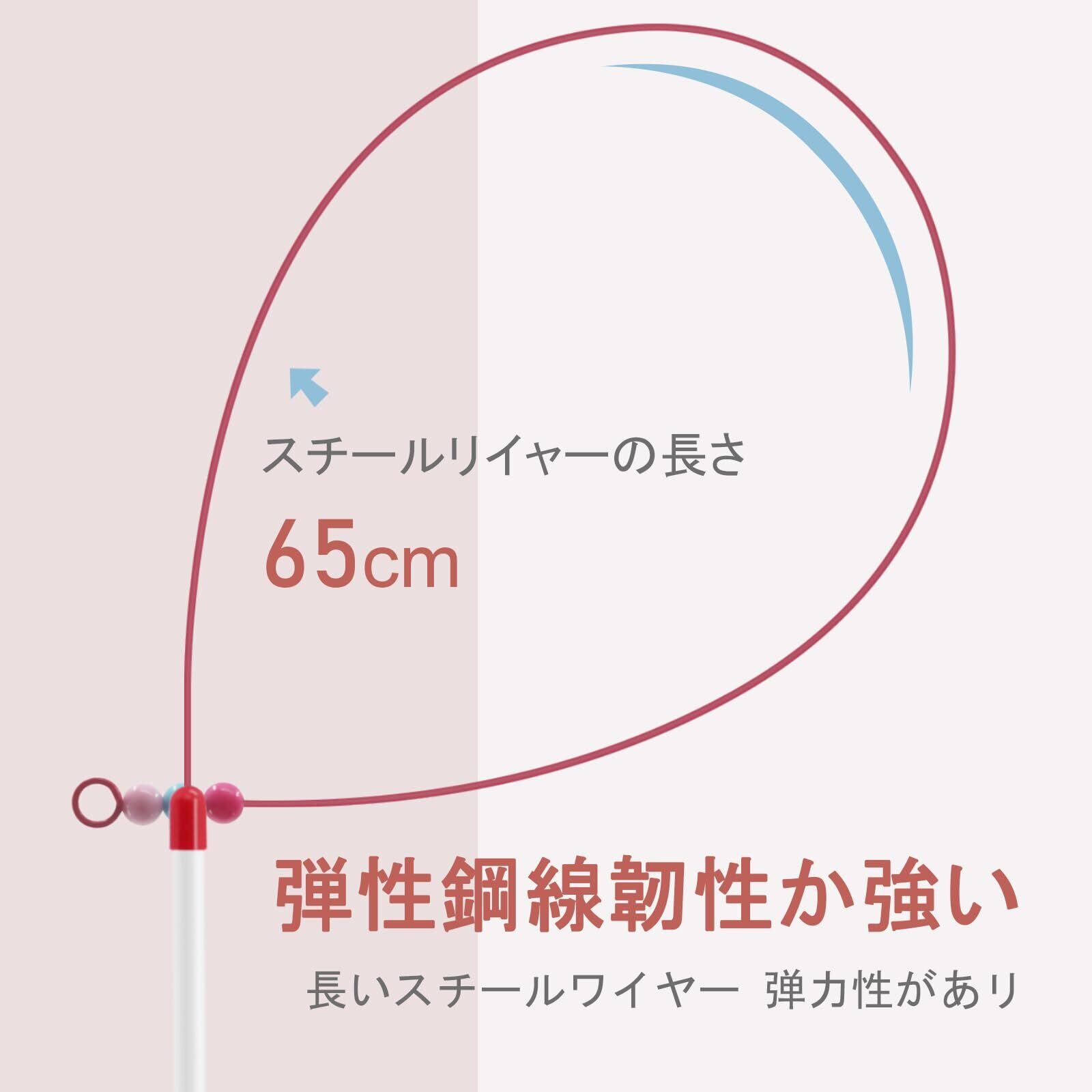 使いやすい竿:ワイヤーが総長80cmなので、猫ちやんとの程よい距離感が作れる長さです。スチール製のワイヤーなので壊れにくいです