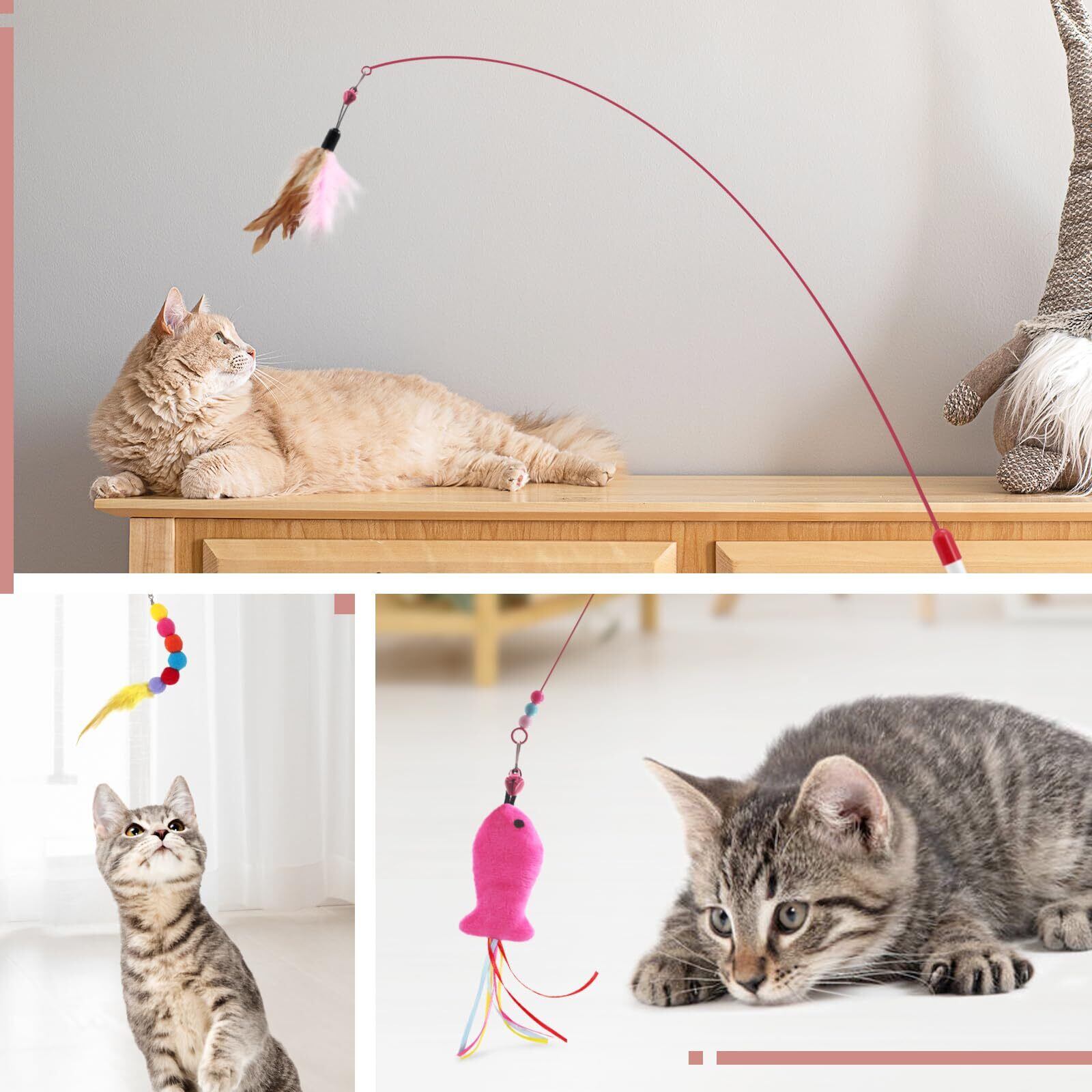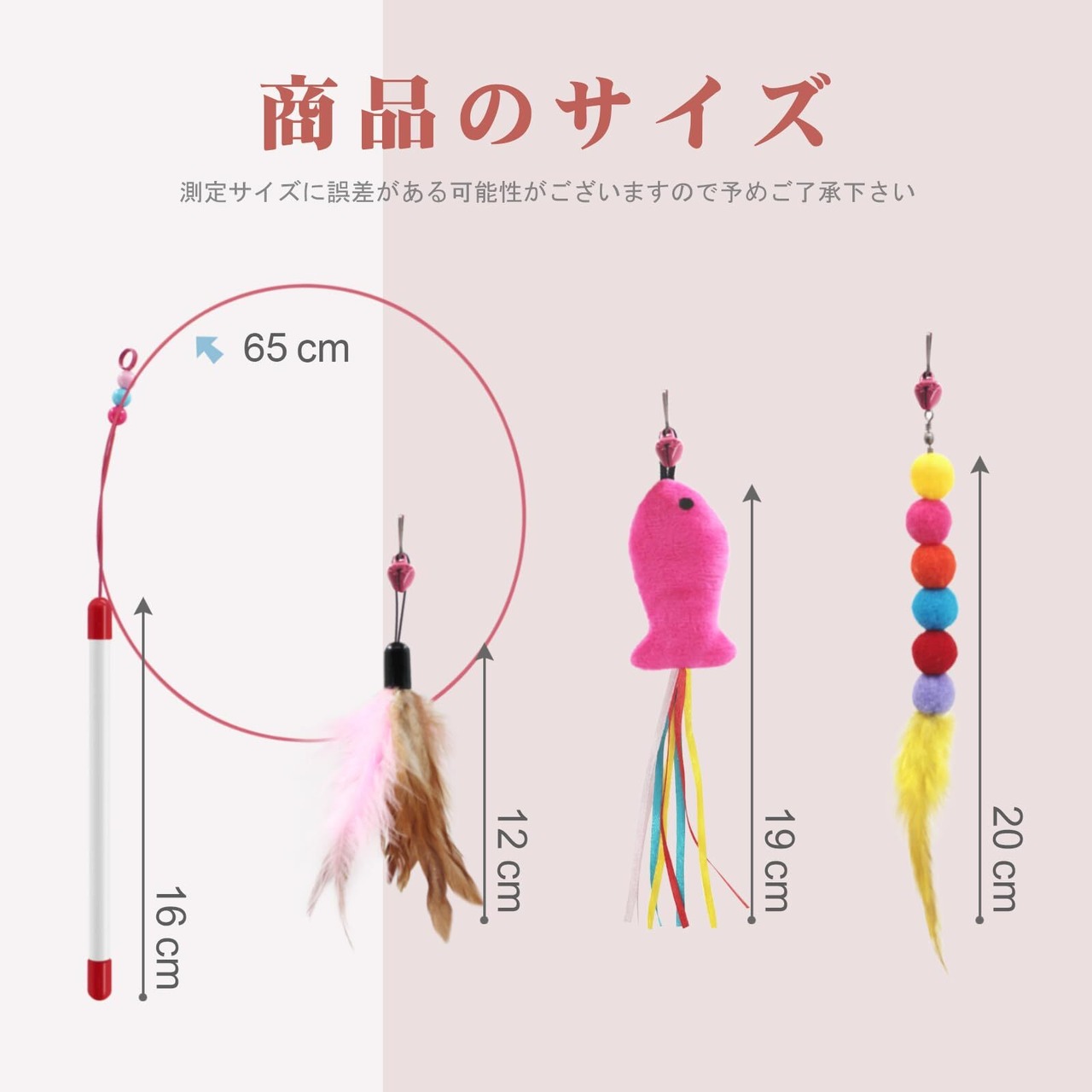 ストレス解消:先端に3種類おもちゃがあるので、気分によって選べ、ニャンズも喜んで遊びます。猫じゃらしは猫の狩猟本能をくすぐり、運動不足とストレスの解消に役立ちます。ネコ様も飼い主も満足です。毎日元気満々に遊び時間を楽しみにしていで、猫ちゃんがご主人の感情と日々深めることができます。