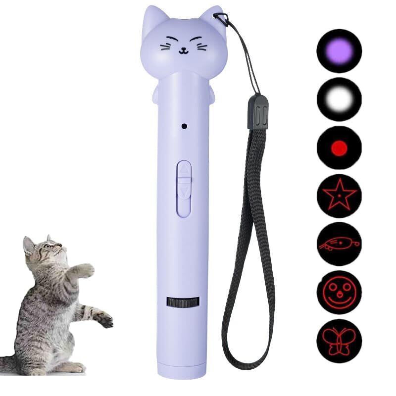 【LEDポインター】猫じゃらしライトとして「ネズミ、蝶々、笑顔、点、五角星」5種類の図柄を切り替えて遊べます。UVライトは猫カビ検査、尿チェック検査ができ、照明ライト機能も合わせもつ多機能な猫用おもちゃです。