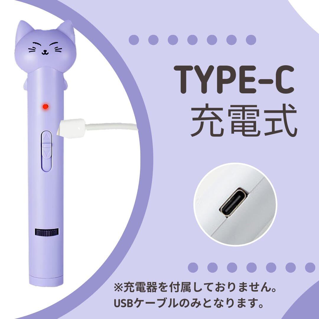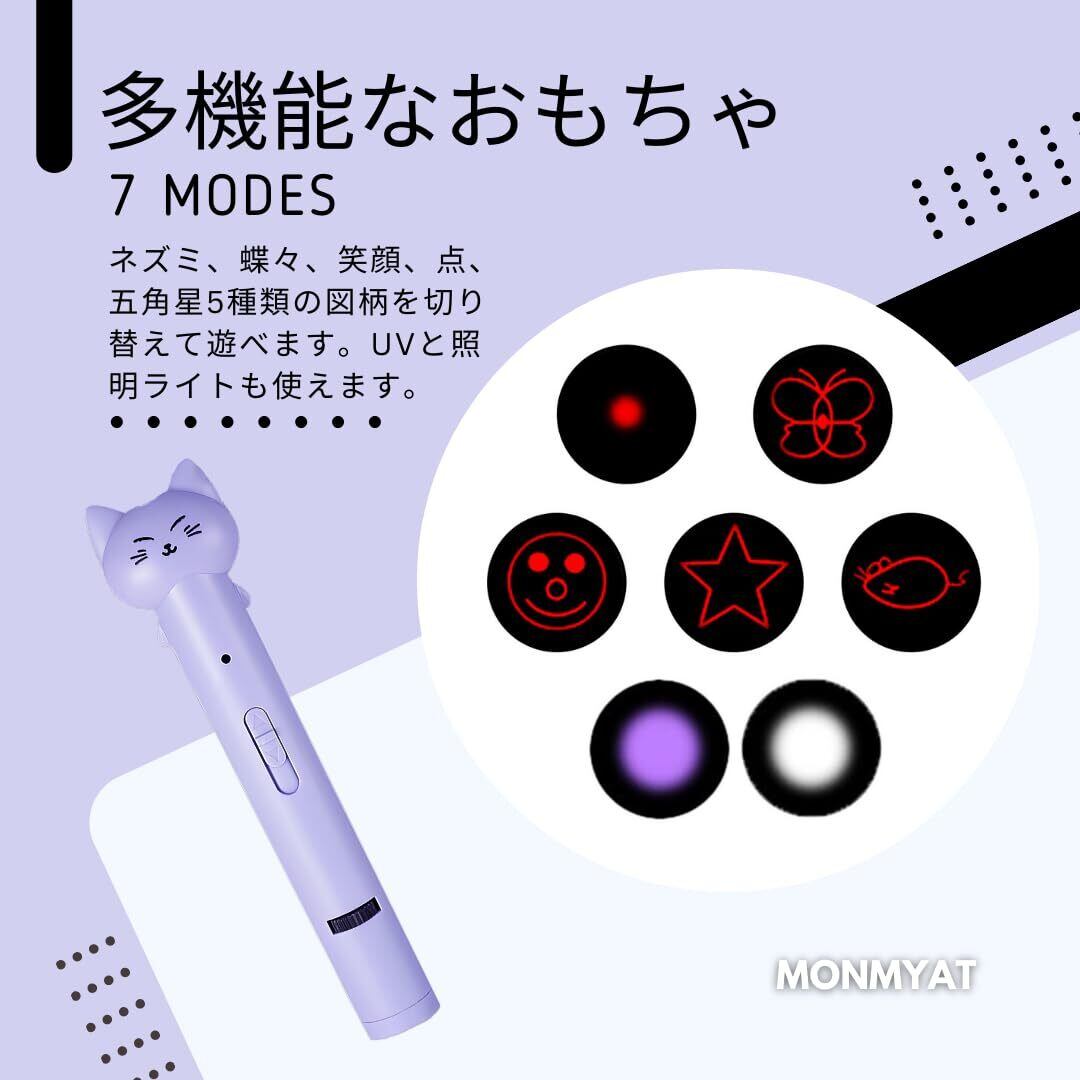 MonMyat 猫おもちゃ【愛猫の運動不足とストレス解消】 【電池不要の充電式】【日本語説明書同梱】LEDポインター 光るおもちゃ 猫 ポインター ねこじゃらし USBタイプ 便利 ポケット入れる可能 パープル