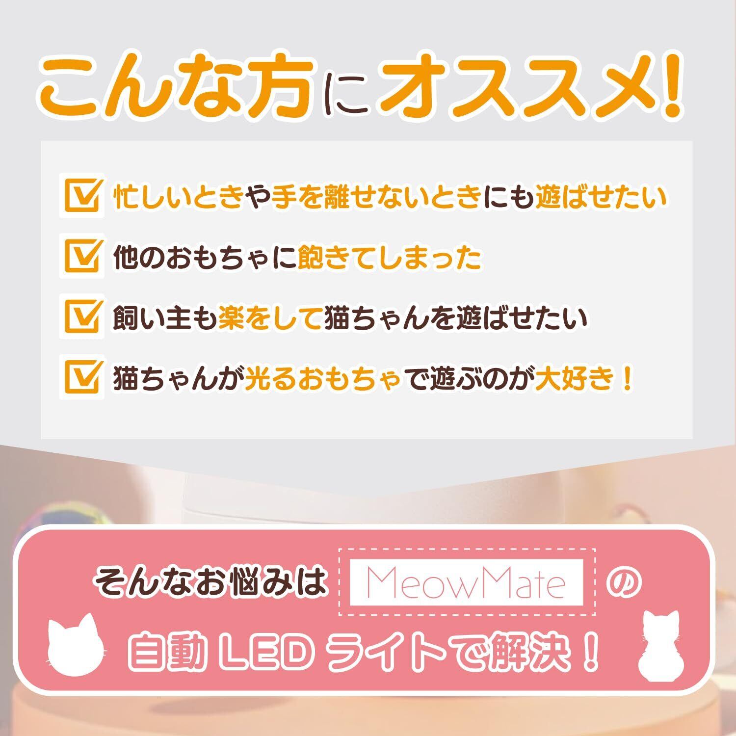 MeowMate 自動猫おもちゃ LEDライト ポインター 光るおもちゃ 電動 一人遊び ストレス解消 運動不足解消