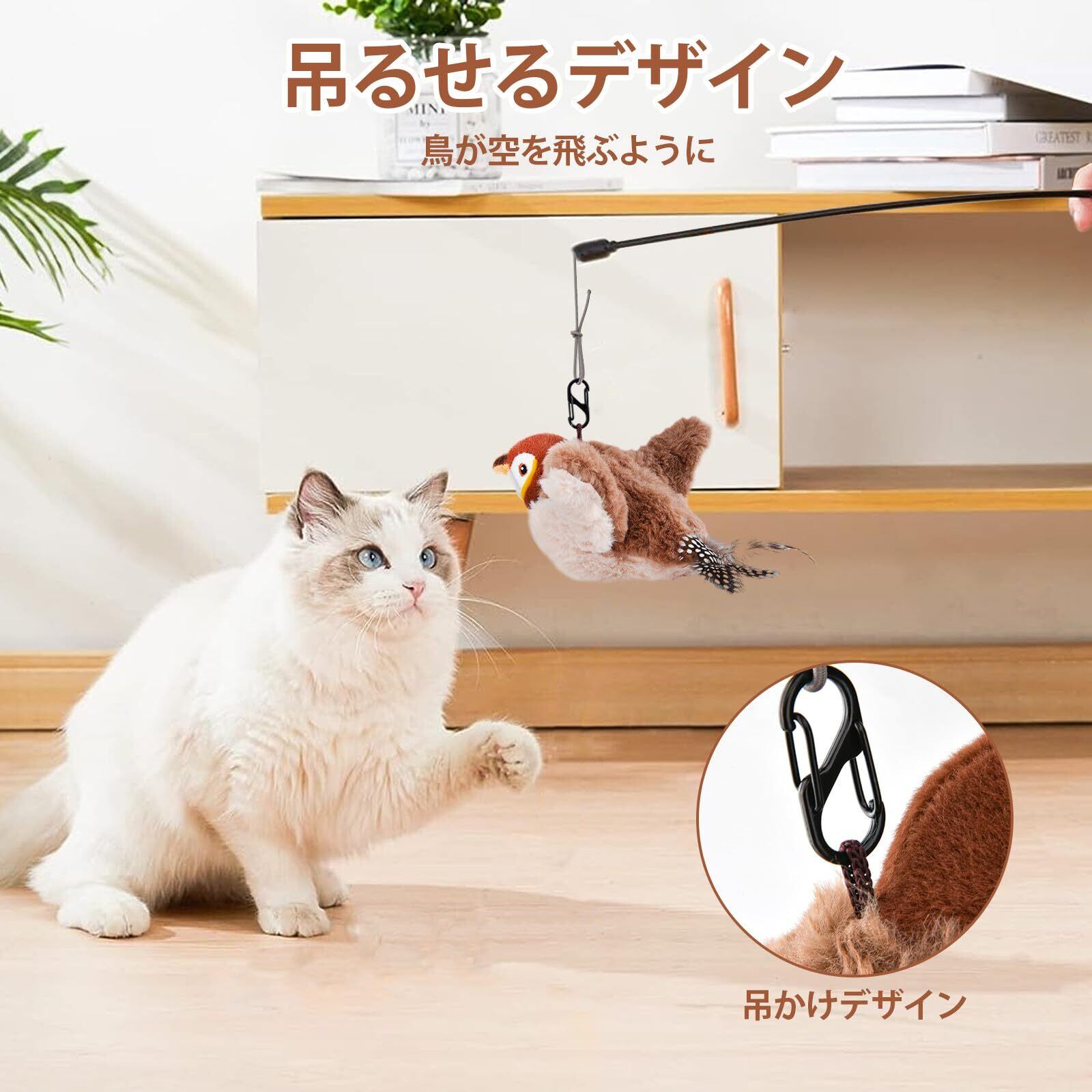 【羽ばたき、さえずる鳥おもちゃ】 この猫おもちゃはセンサーが内蔵されており、触れたり、遊んだりすると、本物の鳥のように羽ばたき、鳴き声を出します。猫の興味を引き、狩猟本能を刺激します。(飛べるわけではありません)