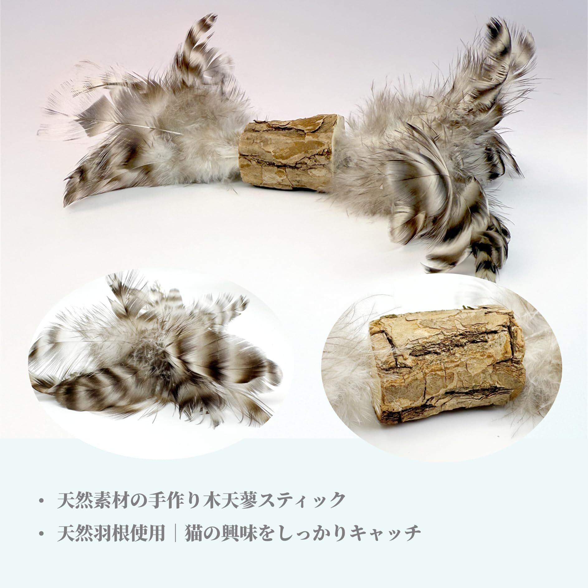 【羽根付きの木天蓼トイ】天然羽根の動きが猫のハンティング本能を刺激。木天蓼は歯磨きにも◎。
