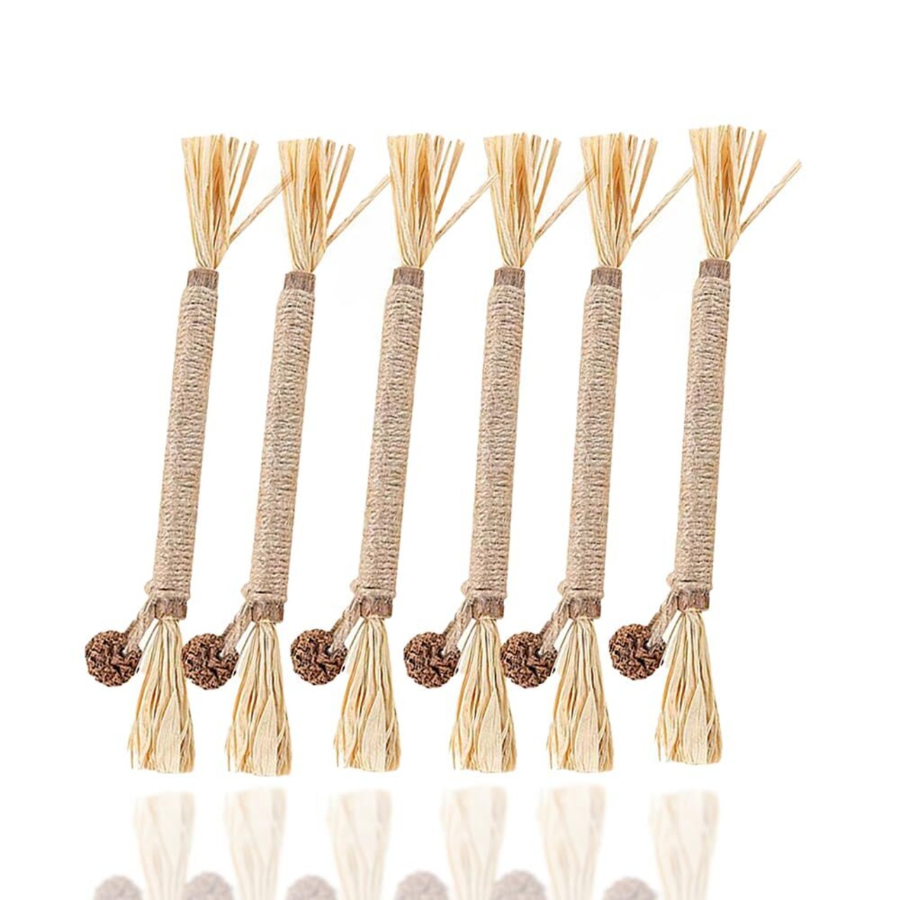 BOOHUQICH ねこ おもちゃ 猫 おもちゃ一人遊び 歯磨き 天然木 麻縄 無毒 歯ぎしり 歯石ケア 肥満解消 運動不足解消 ストレス解消(6本セット)