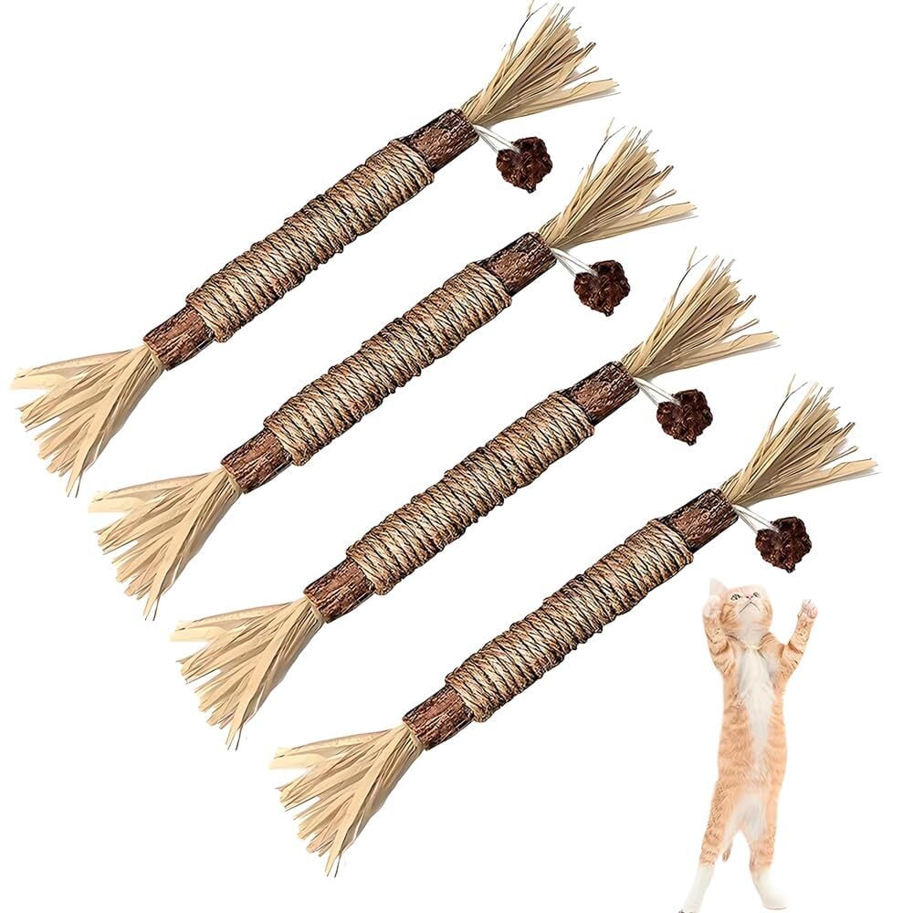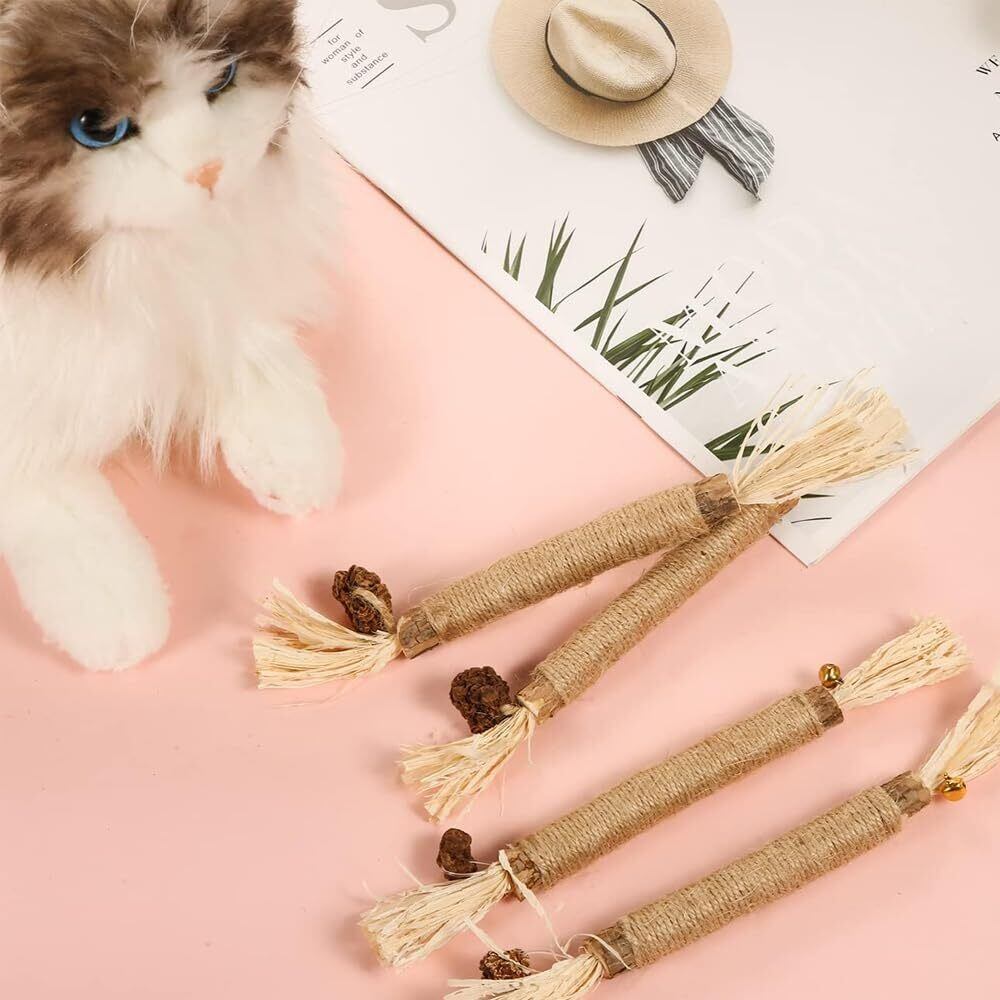 猫 噛むおもちゃ 歯磨き 4本入り またたびの木 猫用品 またたび 歯ぎしり棒 噛むスティック 天然木 歯石ケア 口臭ケア ストレス解消 無毒 運動不足解消