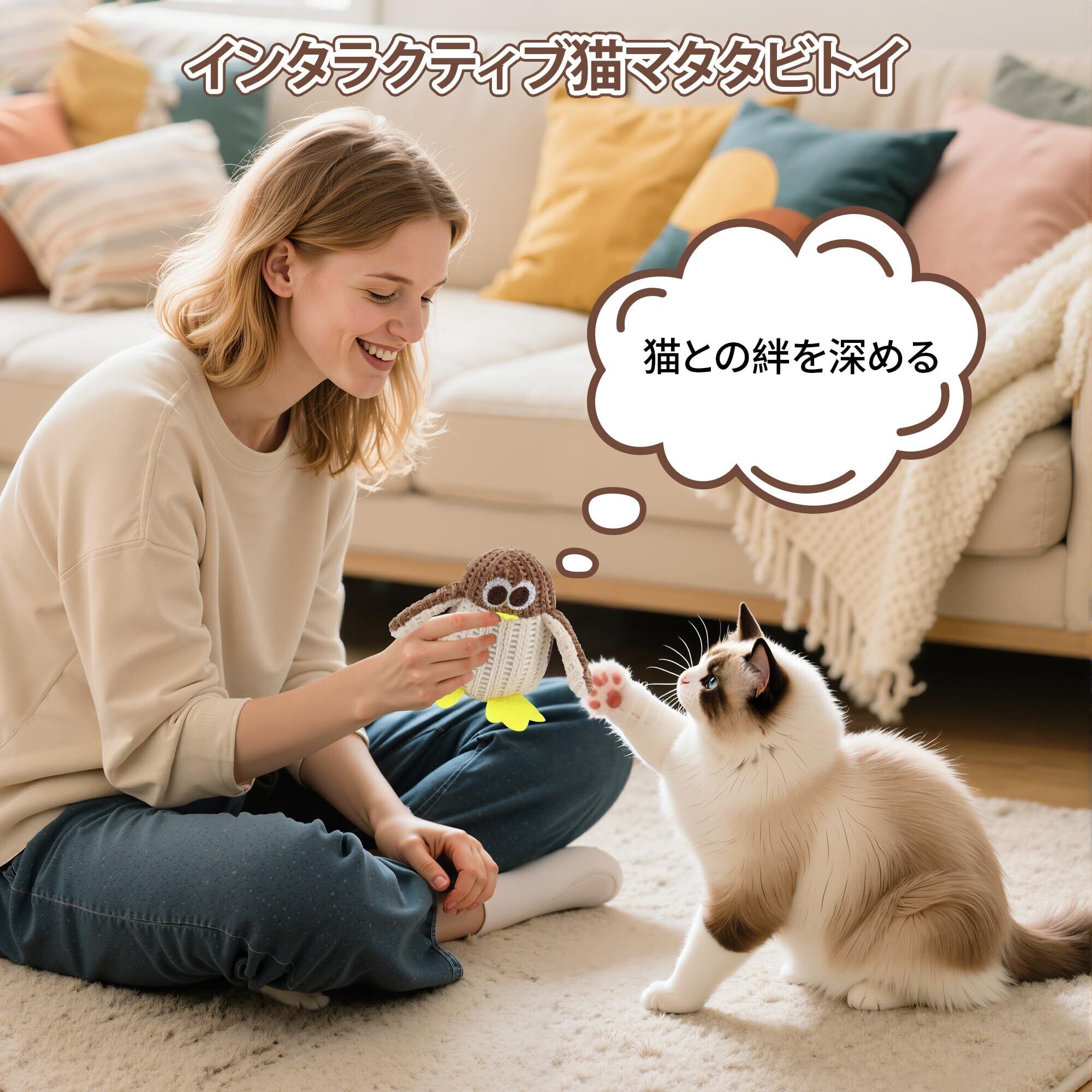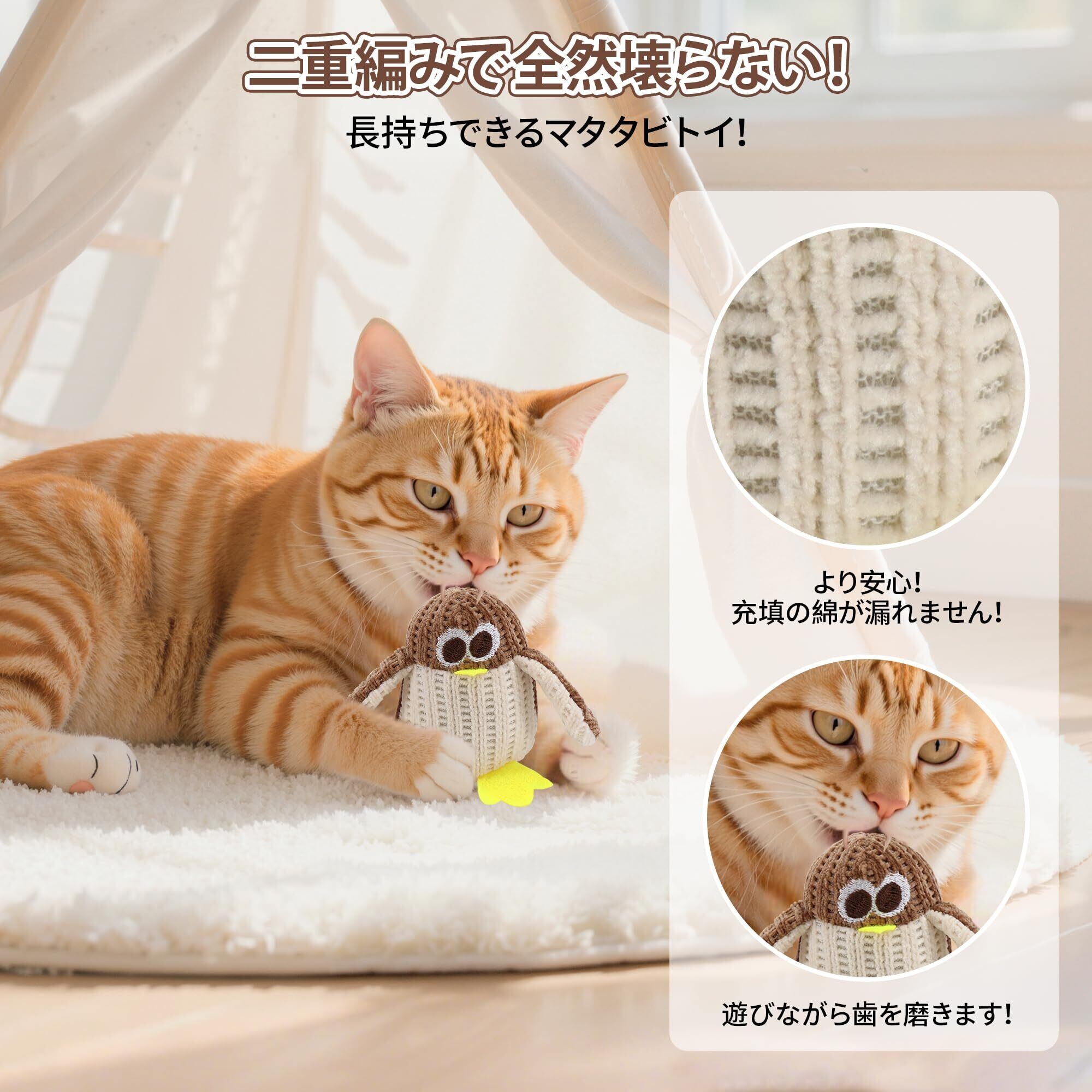 猫おもちゃ またたびトイ 猫用ぬいぐるみ 猫型 ペンギン型 またたび玩具 ひとり遊び 噛むおもちゃ キャットニップ 天然安全 耐久性 噛むスティック 運動不足解消 ストレス解消 誕生日 ギフト (ベージュ/ペンギン)