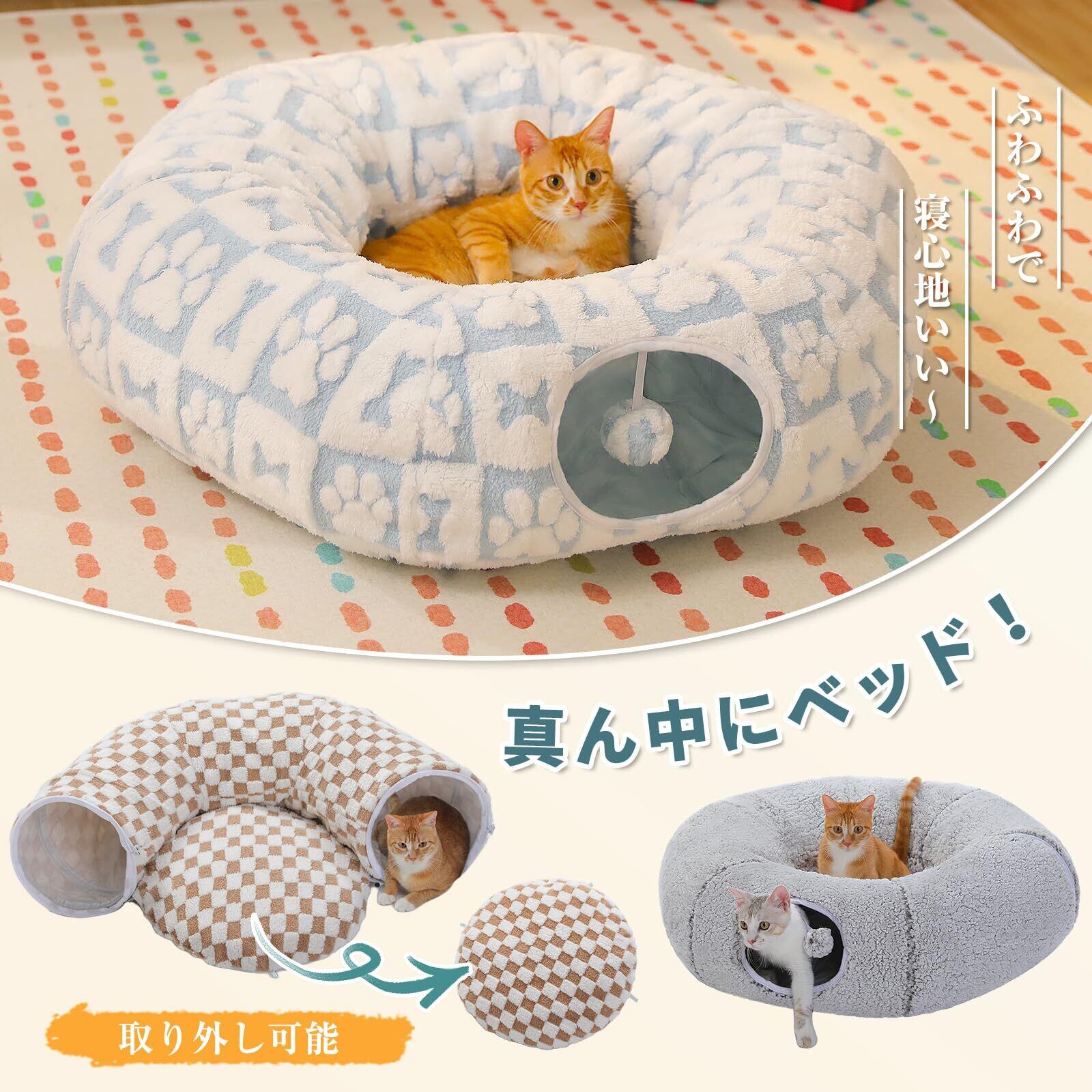 【分解して使用可能】トンネル2つ+ベッド一つで組み合わせています、分解して単独使用可能!