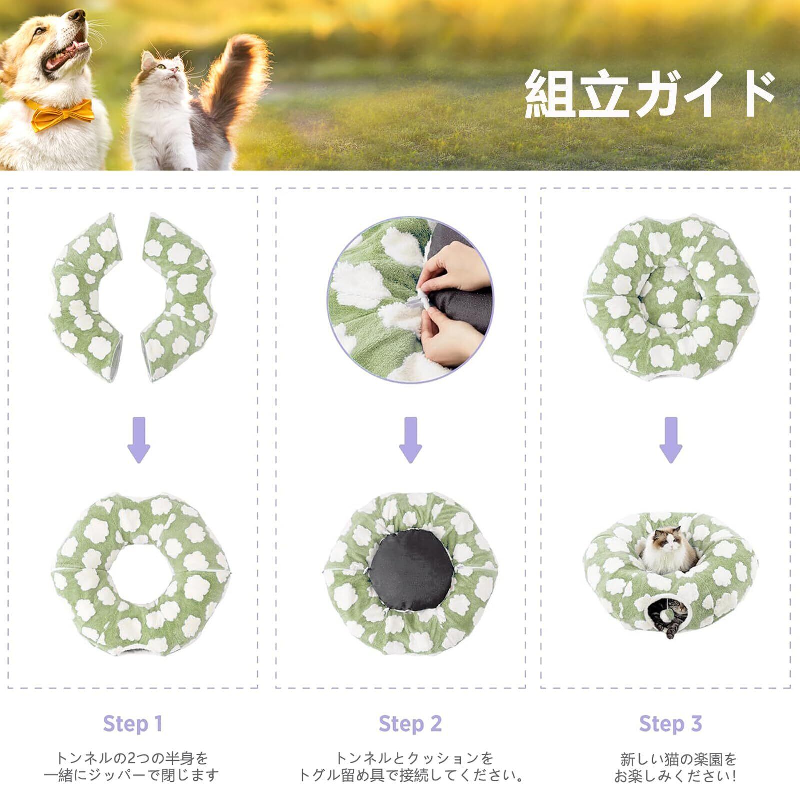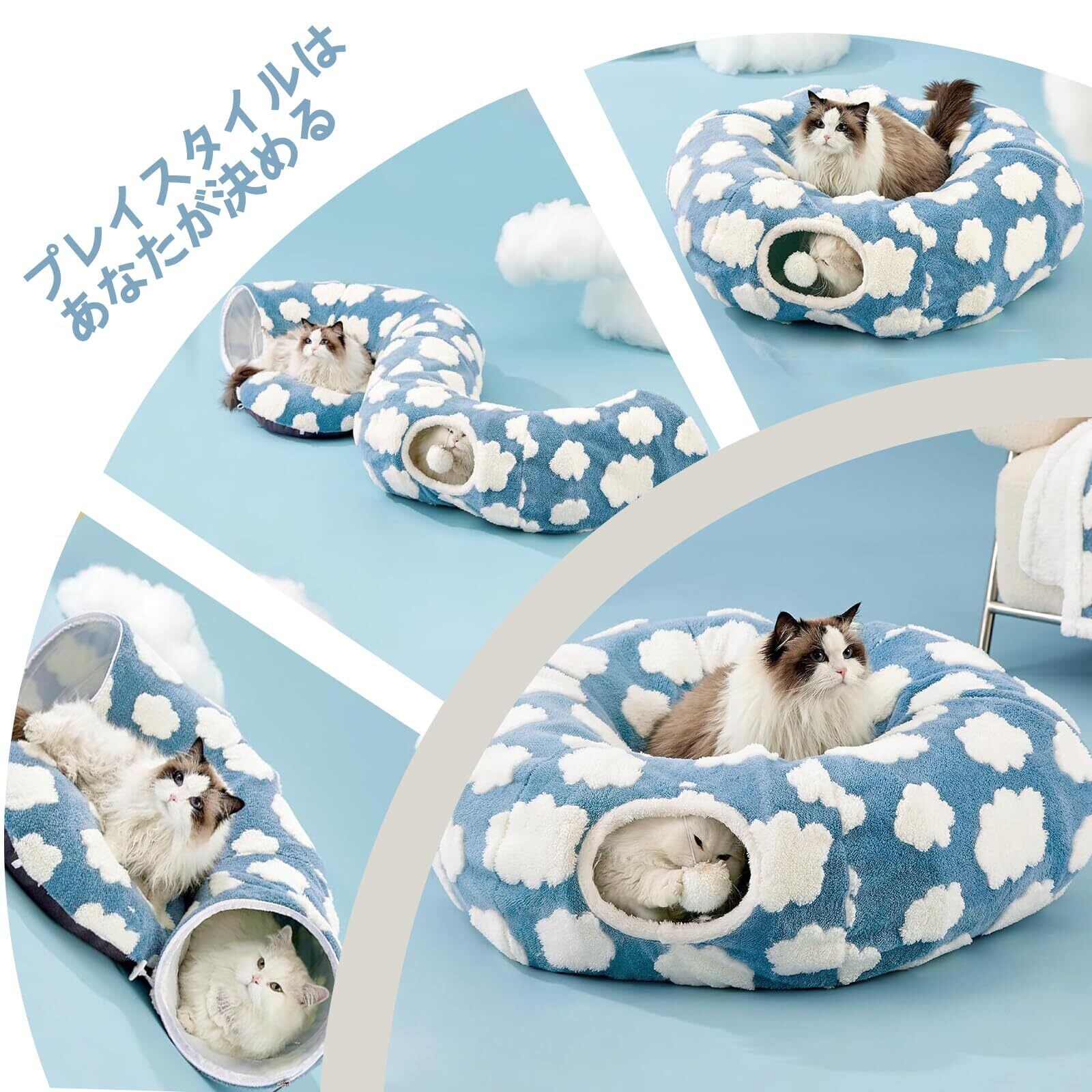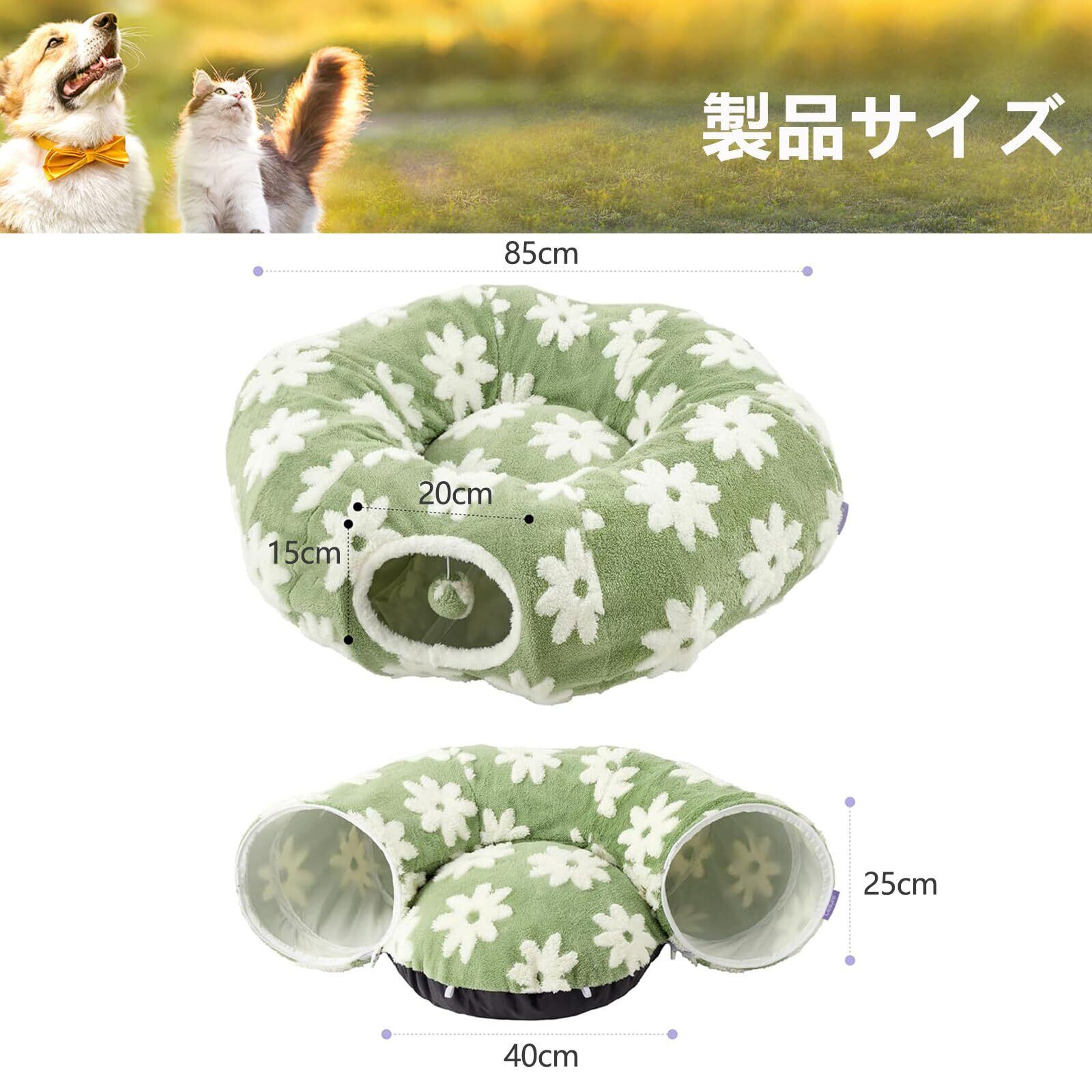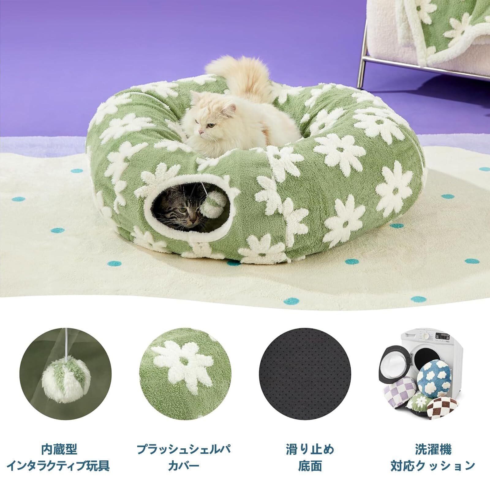 【2in1キャットトンネル&ベッド】遊びと休憩をひとつにまとめた2in1デザイン、トンネルのわくわく感と、ベッドのぬくもりを同時に楽しめます、円形のドーナツ型は、7kg前後の猫や ウサギやフェレットなどのに使用小型ペットにぴったり、隠れる・走る・くつろぐスペースが確保でき、多頭飼いにも最適です