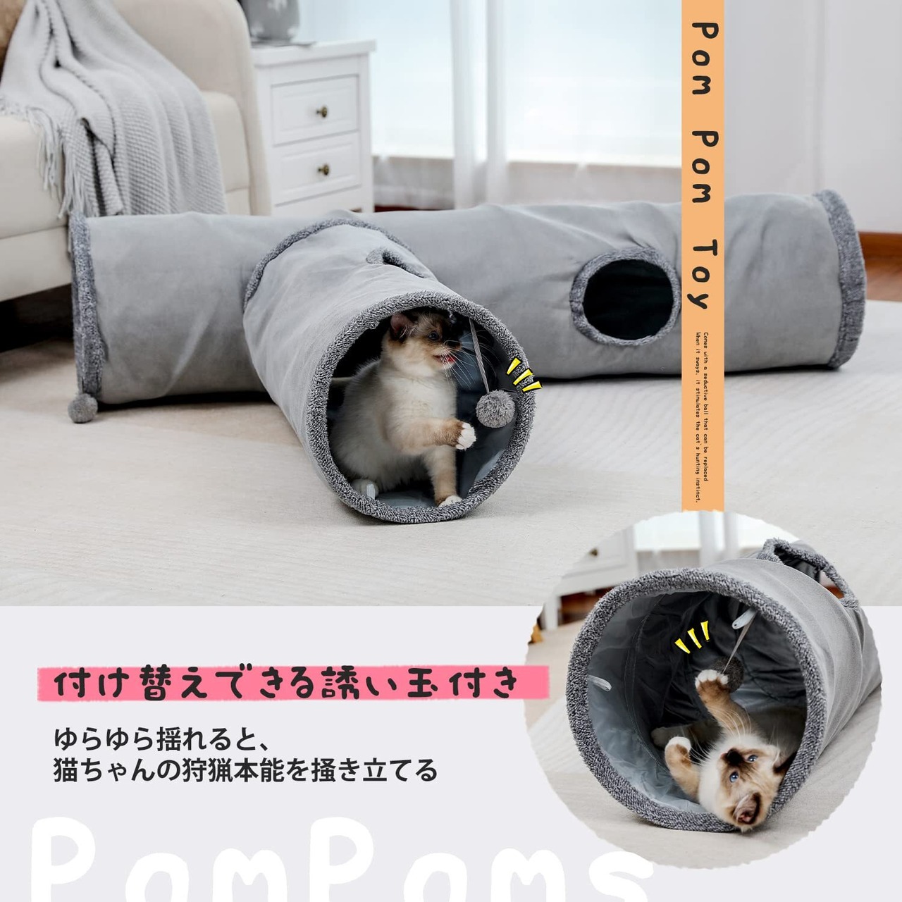 PAWZ Road 猫 トンネル 猫 おもちゃ うさぎ 犬 トンネル 折りたたみ 頑丈 丈夫 スエード製 一人遊び 運動不足解消 キャットトイ ペット玩具 人気 ペット用品 - M グレー