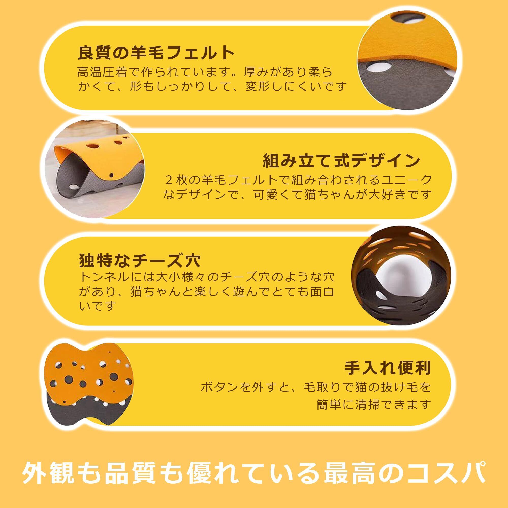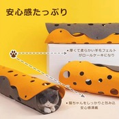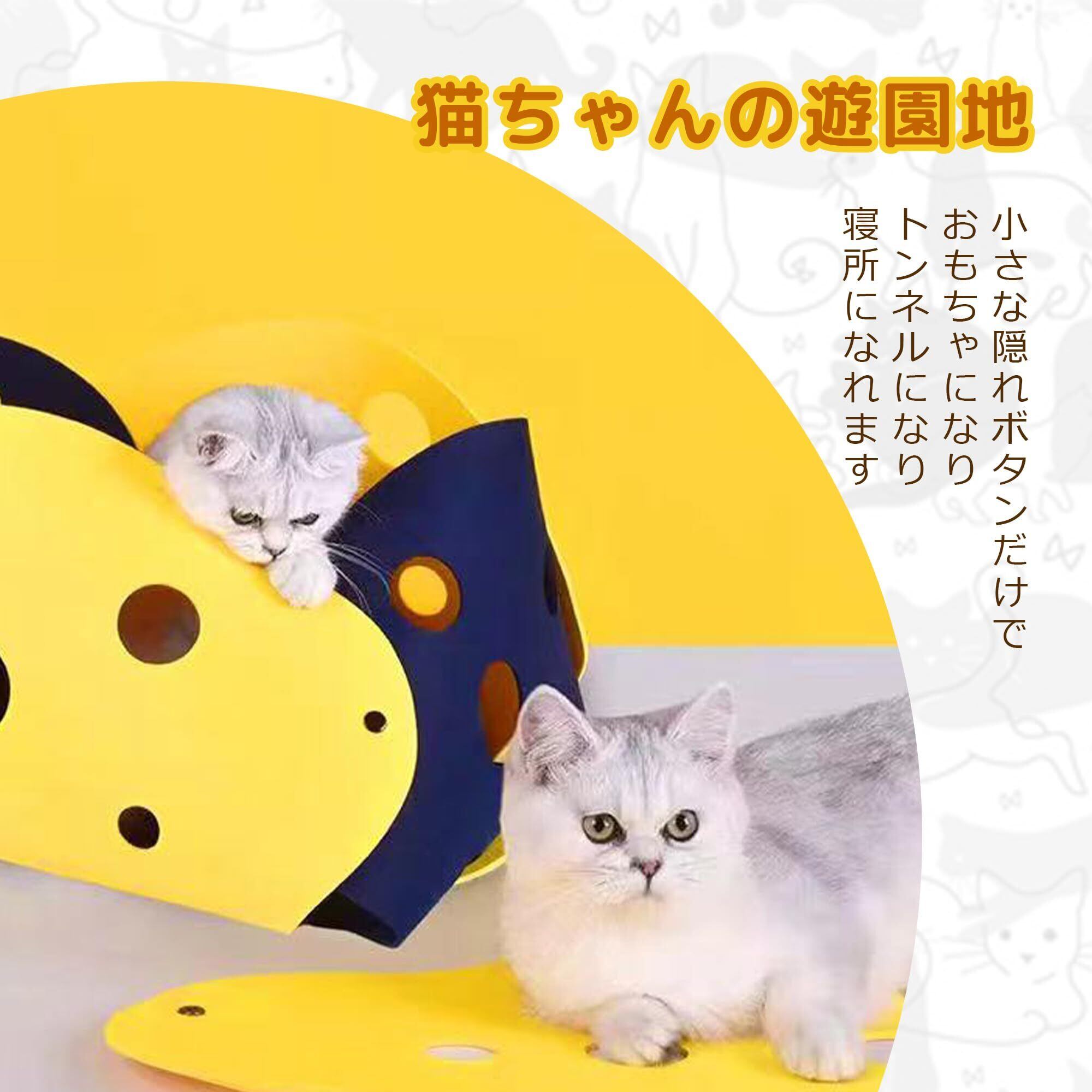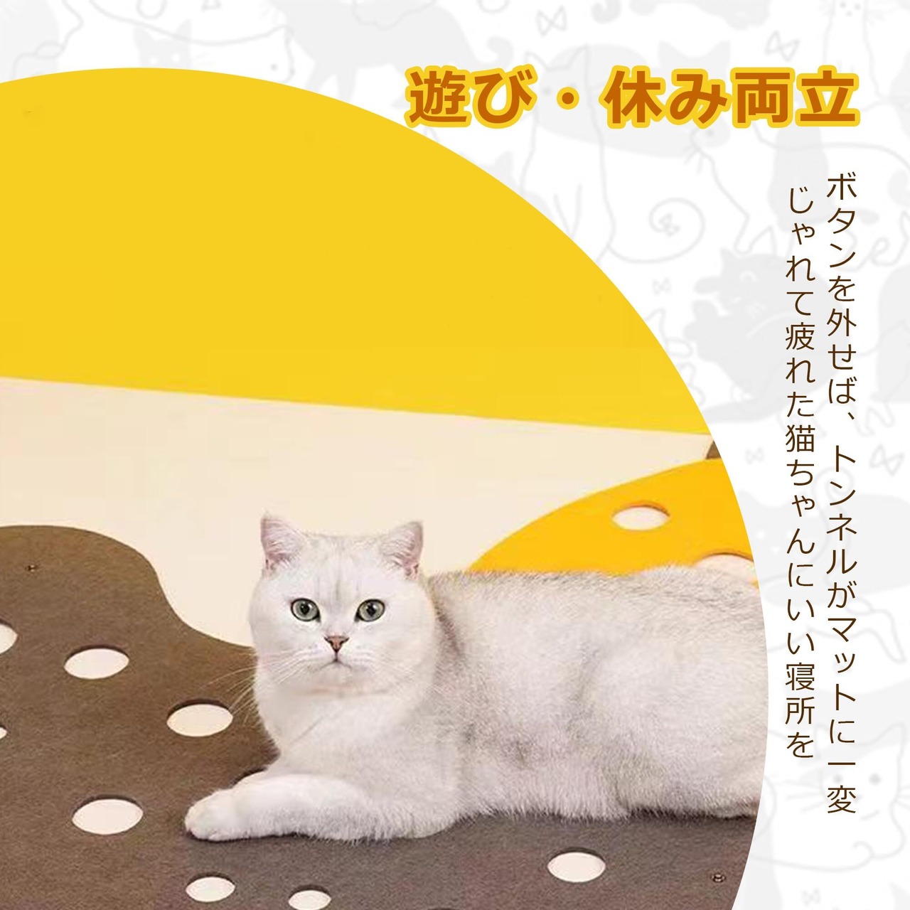 1.組み立て式トンネル:2枚セットのフェルトで組み合わせられるユニークな猫のおもちゃで、ボタンをつけると普通のマットがすぐに猫 トンネルになれます!色々な使用方法があり、猫 玩具としても猫 ベッドとしても使える人気の猫 グッズです