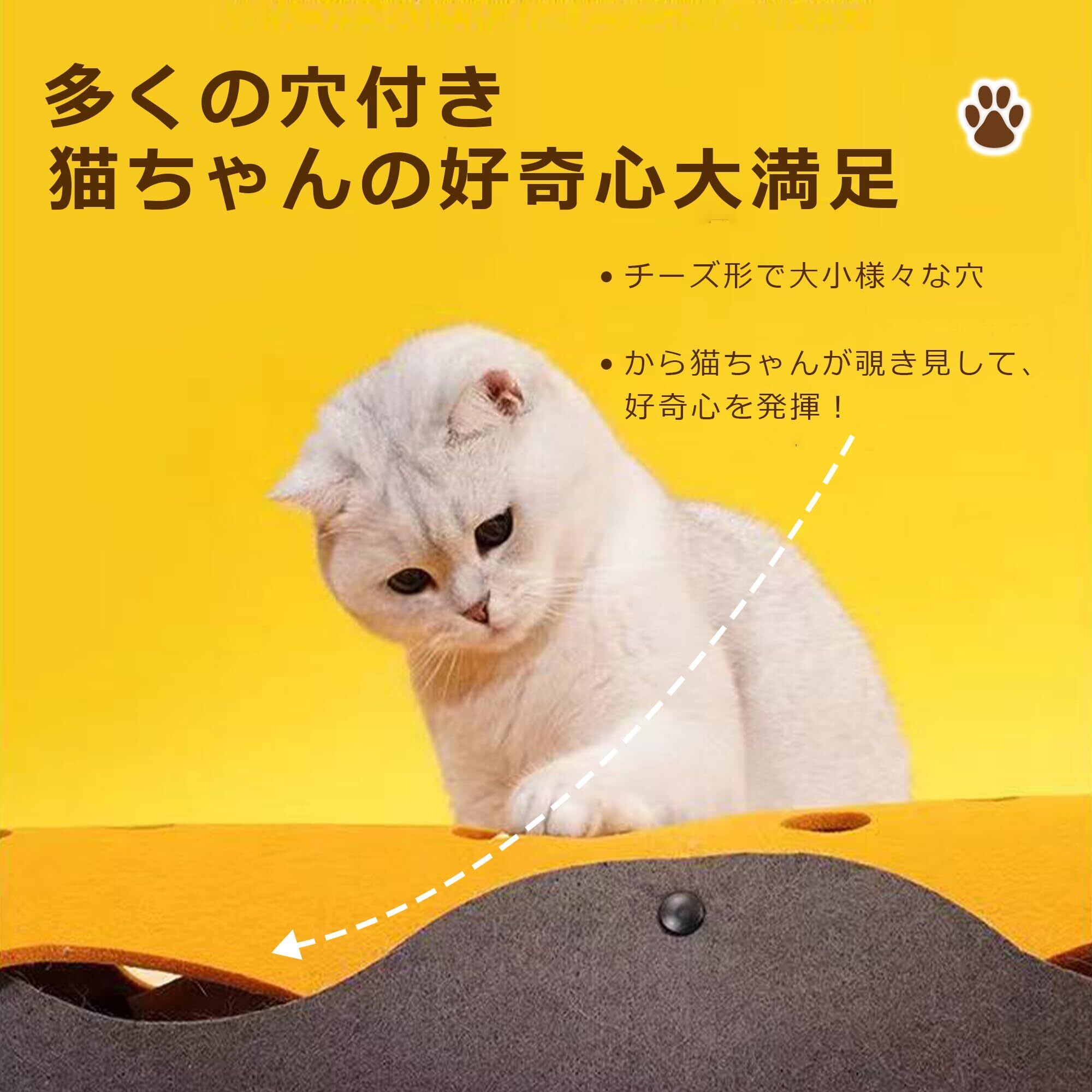 2.独特なデザイン:チーズに基づいて大小様々な穴付きのデザインで、穴の上に猫じゃらしで猫ちゃんと遊んだり、一人遊びさせたりして、好奇心を刺激し、ストレス解消ができます。色も豊富で、自由に可愛い猫 ハウスに変身できます