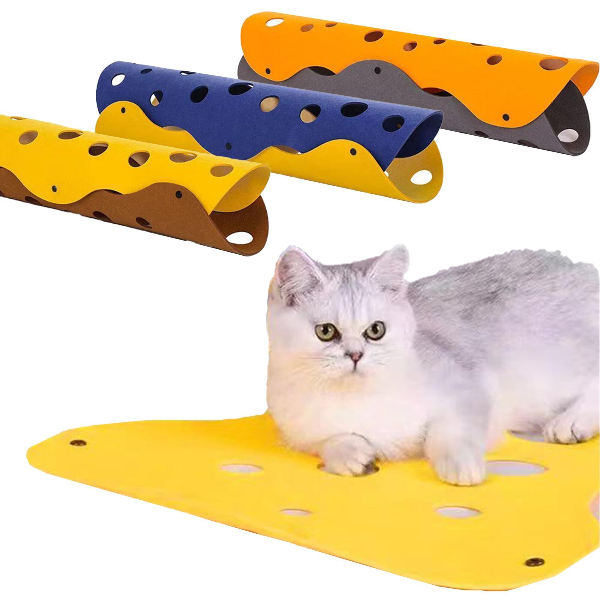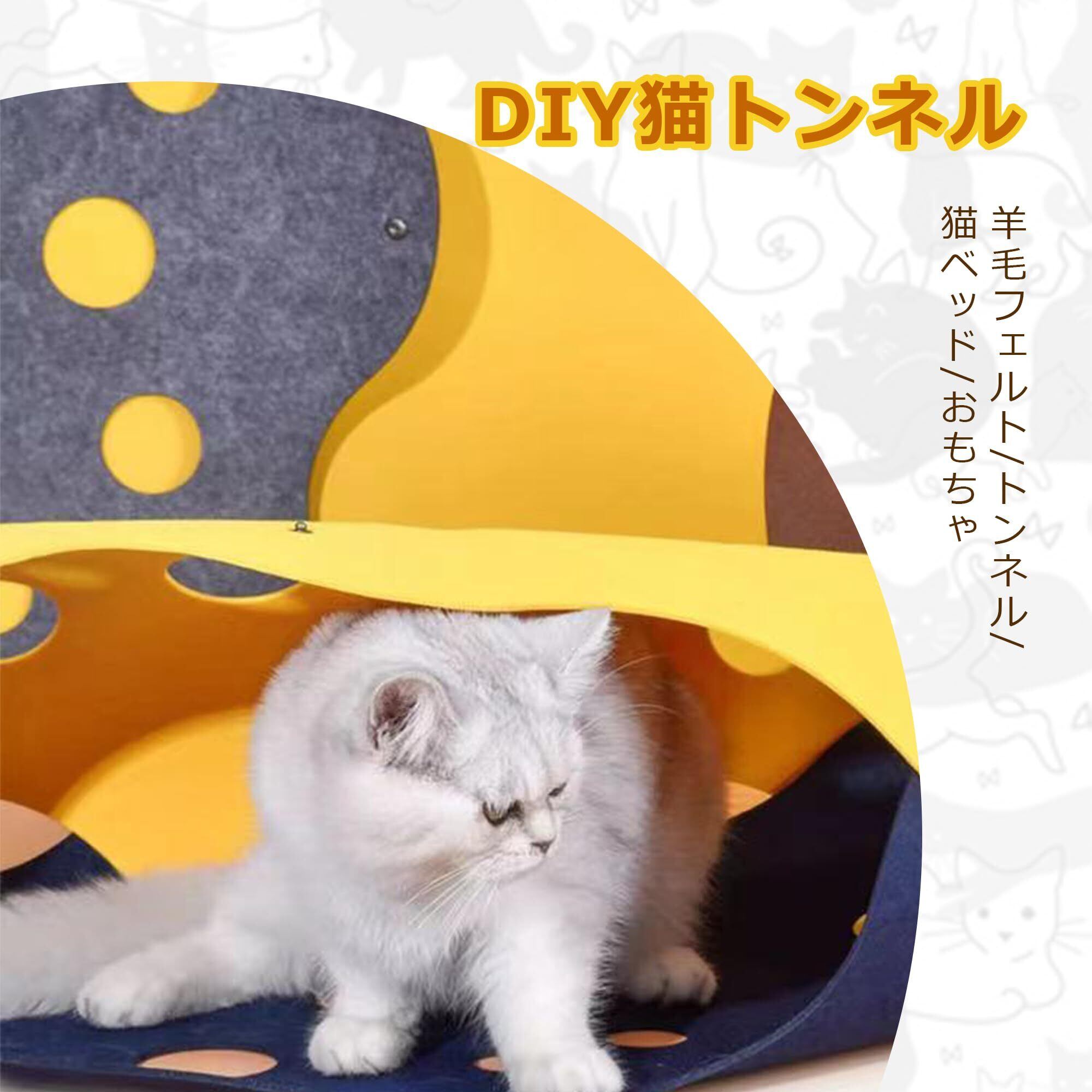 猫トンネル 猫 おもちゃ 猫グッズ 羊毛フェルト製 組み立て式 猫 マット 2枚セット 一人遊び ストレス解消 穴付き 清掃簡単 収納便利 耐久性 うさぎ 子犬 ペット用品 猫 玩具 猫 ベッド キャットトンネル (紺色+黄色, 3mm(92*43))