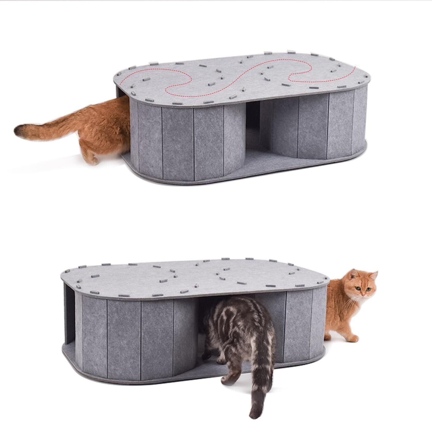 LIMEETKET シングルタイプ猫用トンネル ダブルタイプ猫用トンネル おもちゃ 頑丈で耐久性がある 猫の本能を引き出す猫用おもちゃ S字型猫用トンネル (グレー, 大きい)