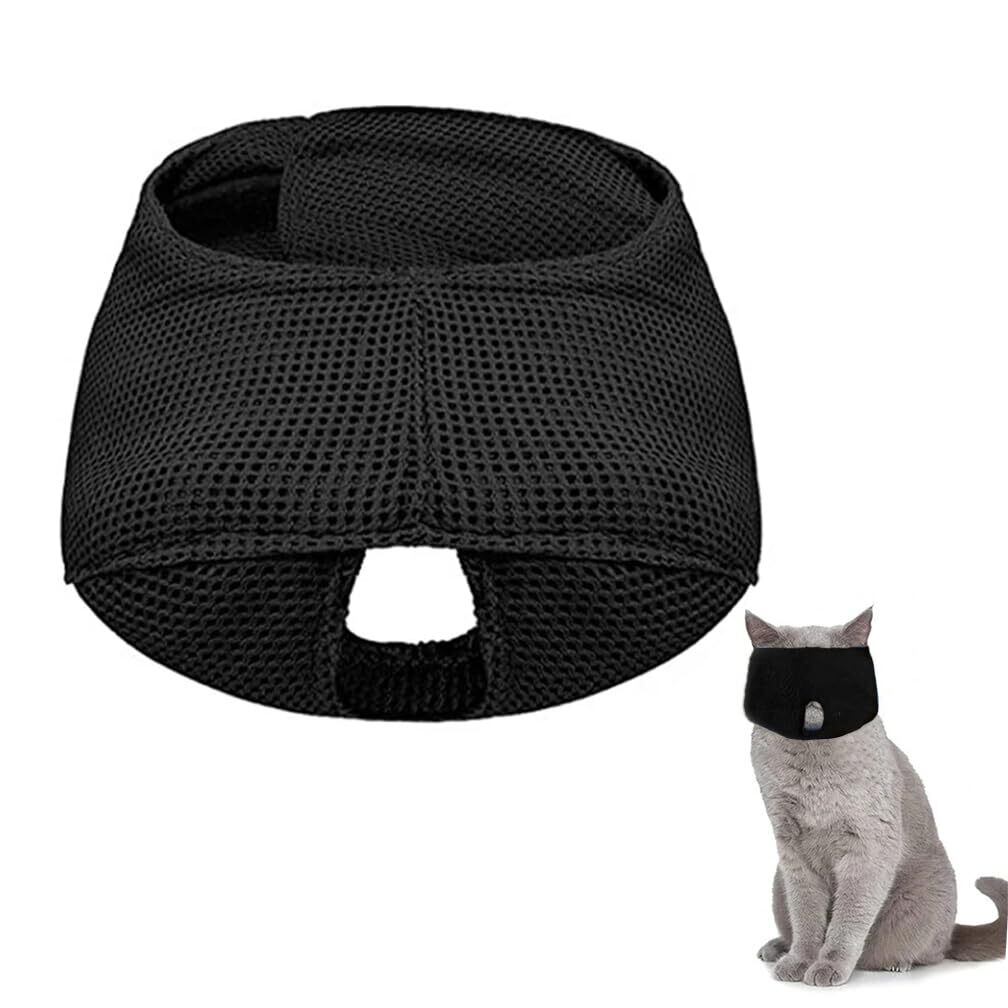 【メッシュデザイン】ポリエステルメッシュ、柔らかい素材、手触りが良い。 鼻と口の中空のデザインは通気性が良く、猫の食事や呼吸に影響を与えません。 同時に軽量で、猫の頭の重量を増加させません、長く着用できます。通気性がいいので夏でも使えます。